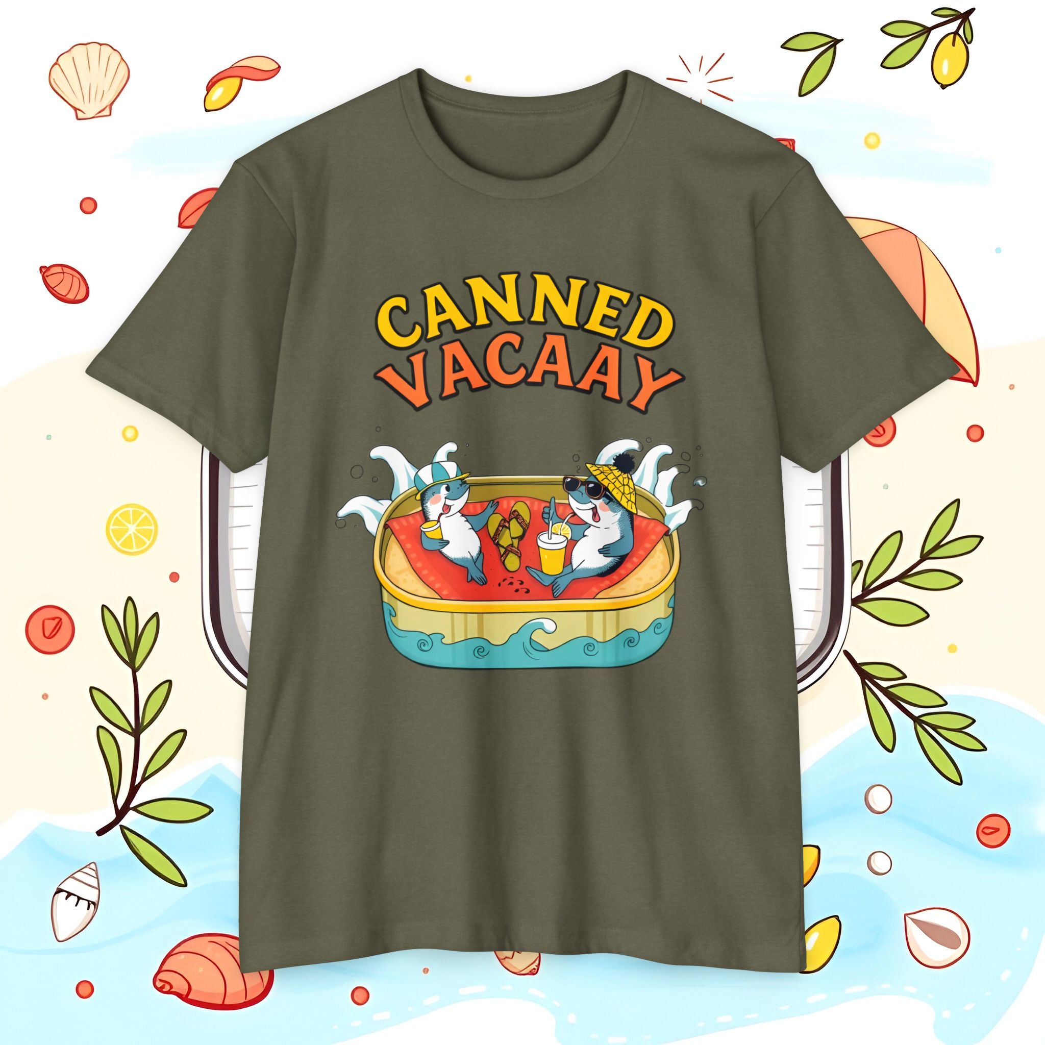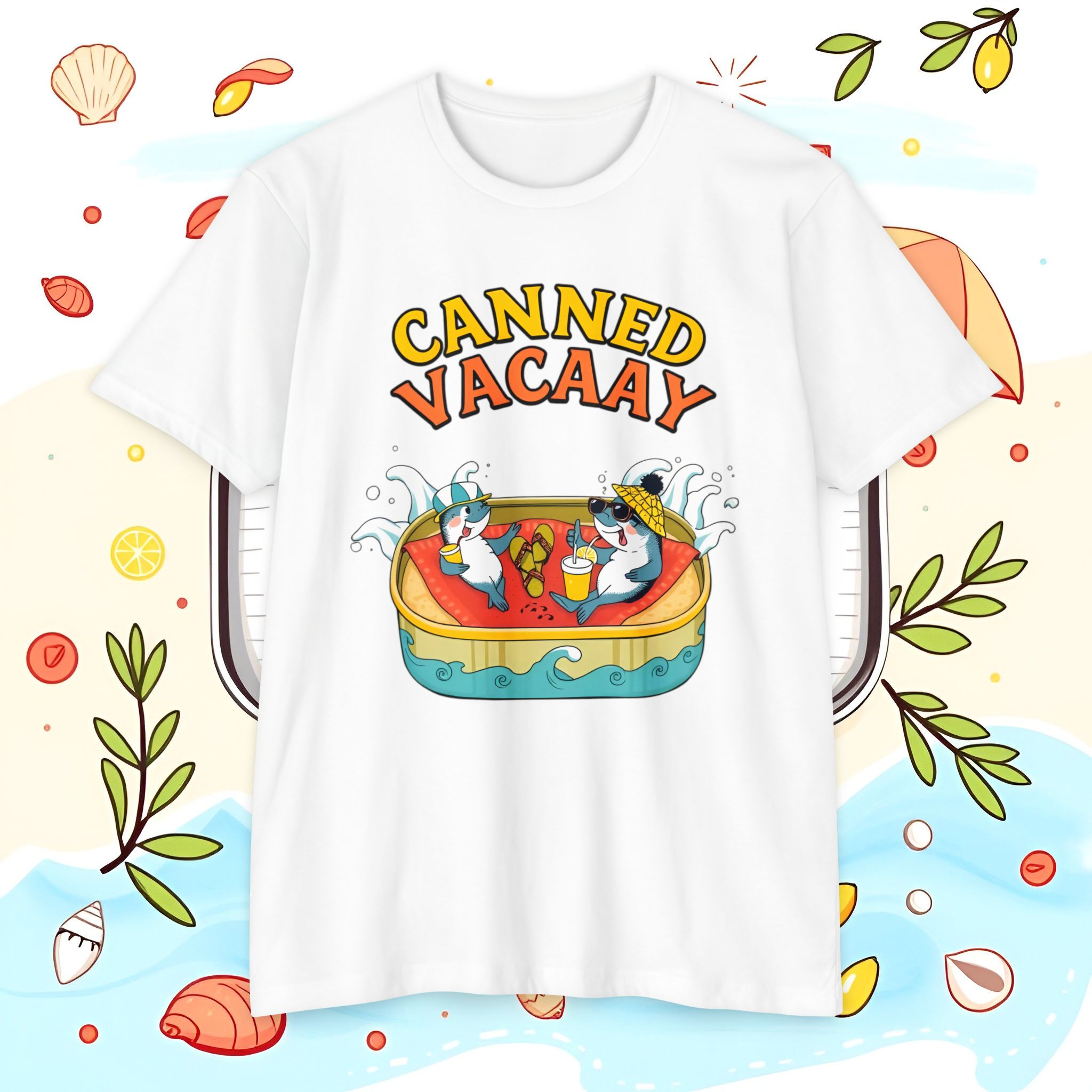 canned vacay t shirt unisex, vacay tee for family trips, vacation shirt for travel lovers, beach vacay graphic tee, summer vacation t shirt 2025