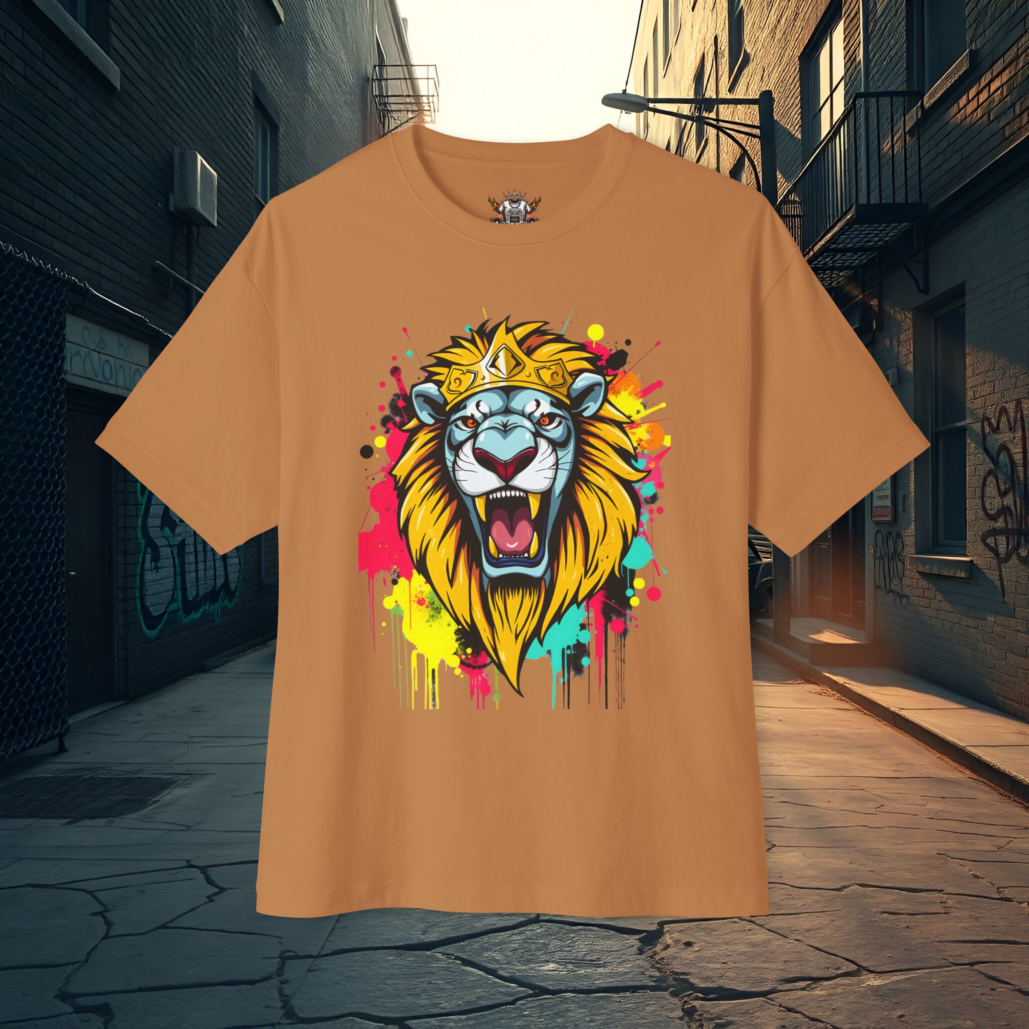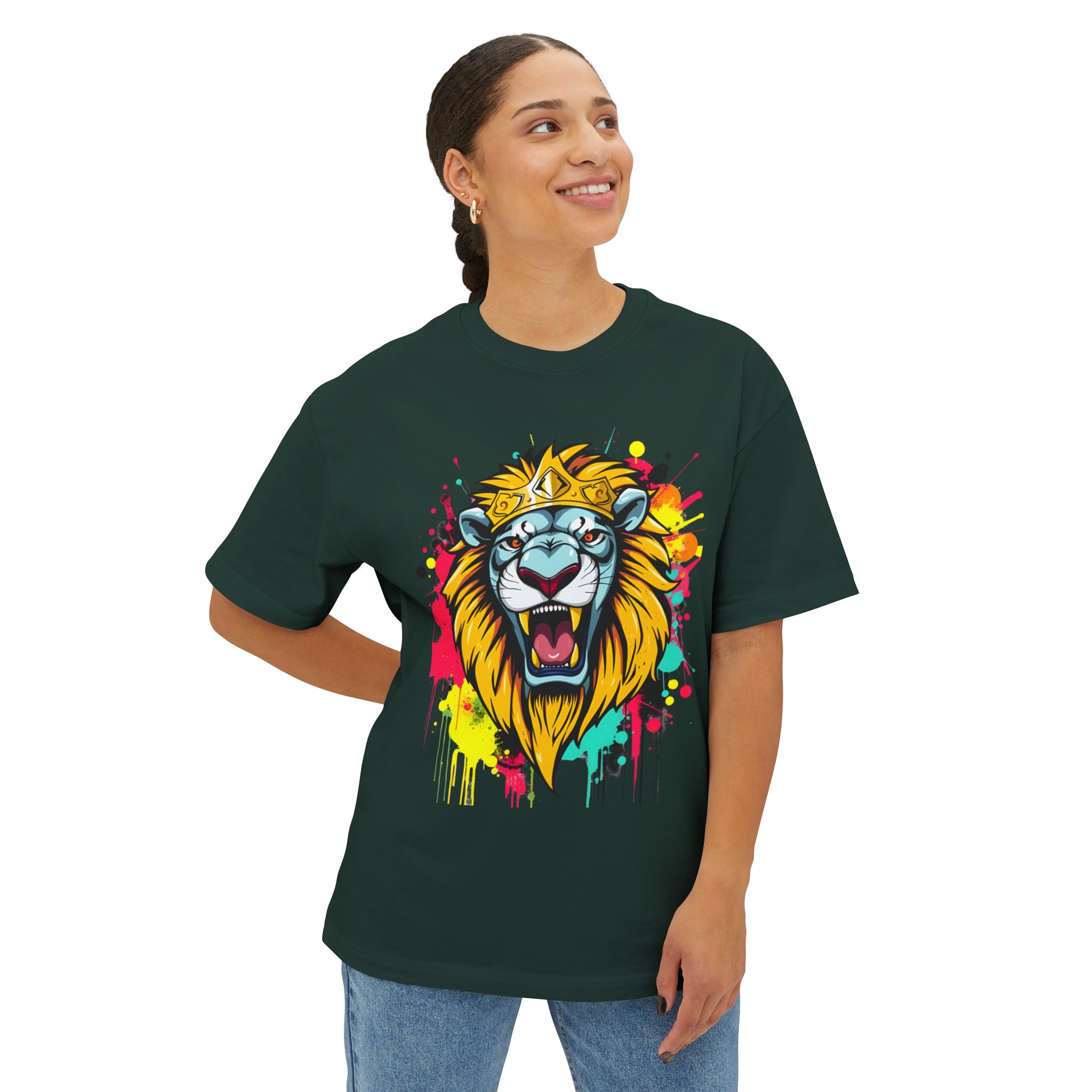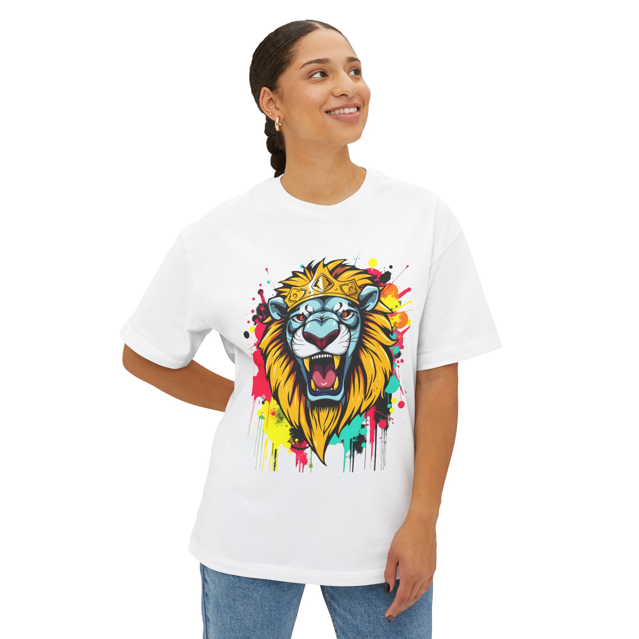 lion graphic tee — Bring bold color and effortless comfort to your wardrobe with this Colorful Lion Graphic Oversized Tee. This unisex boxy shirt pairs a vibrant, art-forward lion print with a relaxed silhouette that fits like a wearable statement piece.
