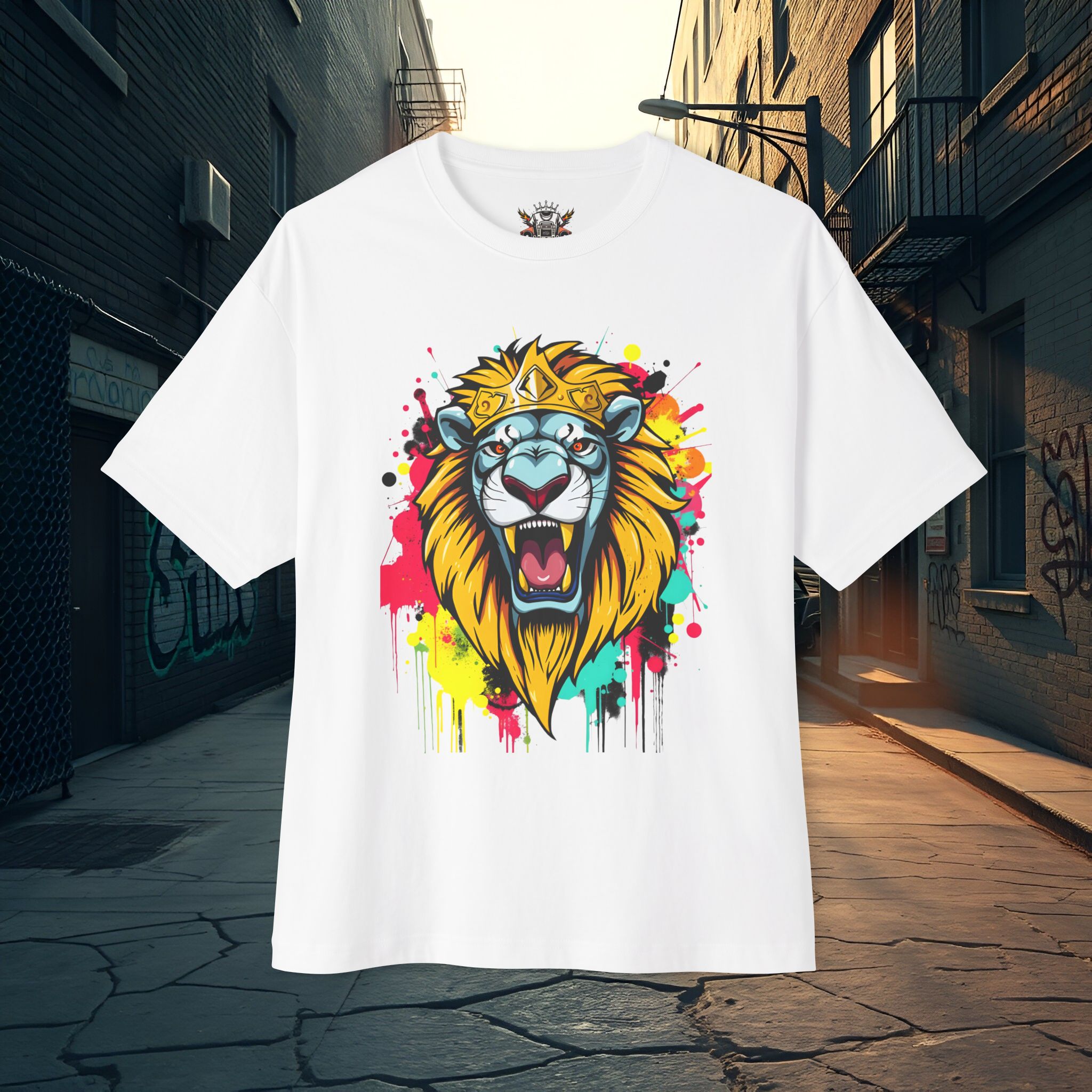 cotton tee, ring-spun cotton tee, dropped shoulder tee, double-stitched tee, wearable art tee, colorful graphic tee, summer outfit tee, streetwear t shirt, unique art tee, limited edition tee, lion print shirt