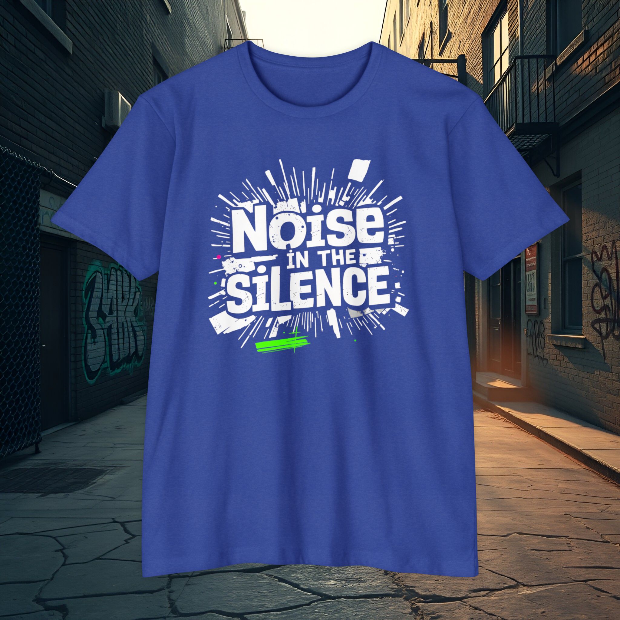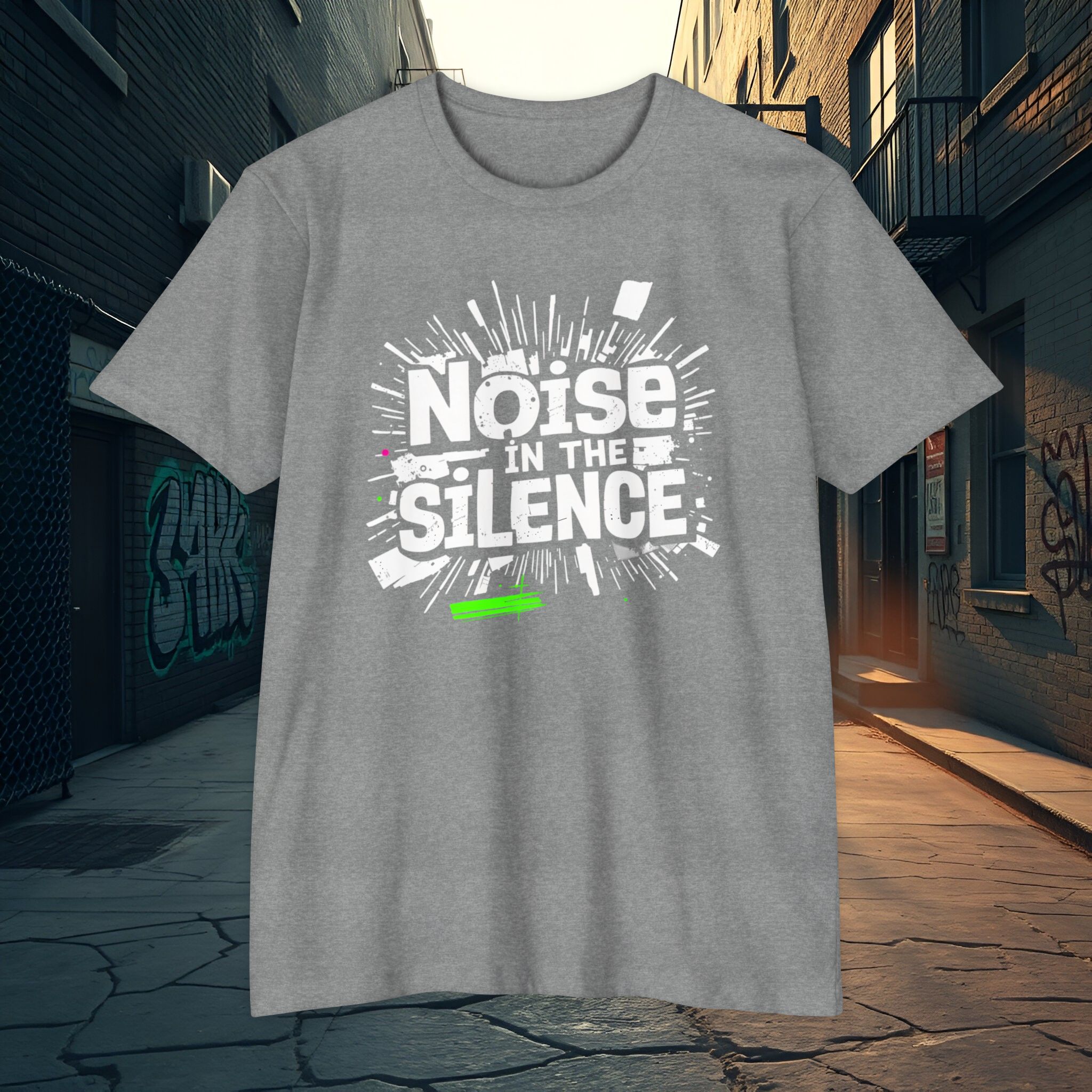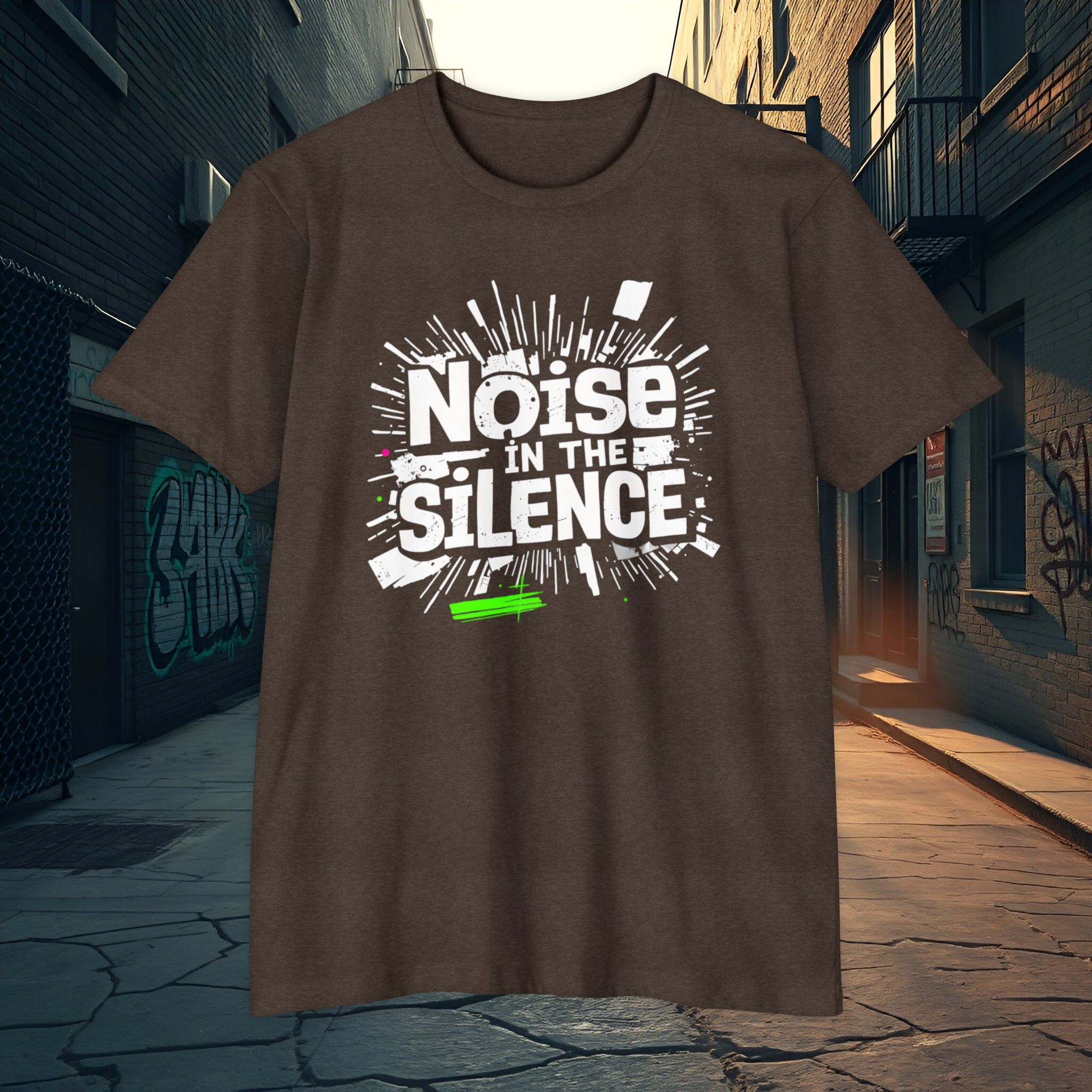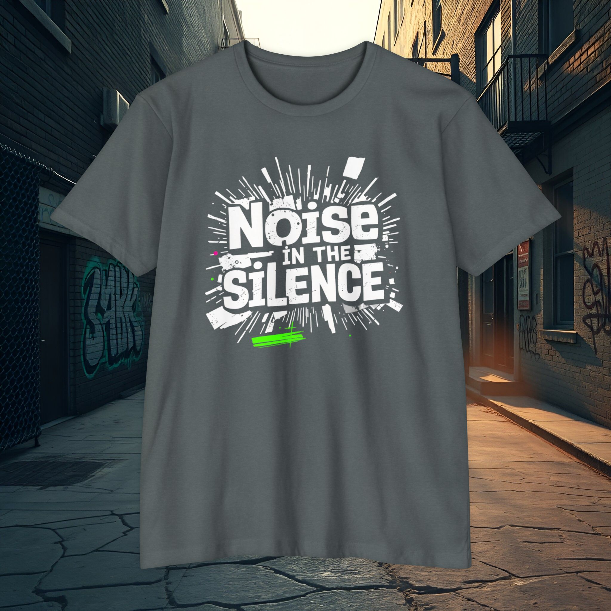 noise in the silence t-shirt, noise in the silence tee, music lover t-shirt, band tee, concert t shirt, graphic tee unisex, indie music t shirt, festival t shirt, casual streetwear tee, gift for music lover, CVC jersey t shirt, 60% combed cotton 40% poly tee, 4.3 oz t shirt, lightweight breathable tee, tear away label tee, noise in the silence