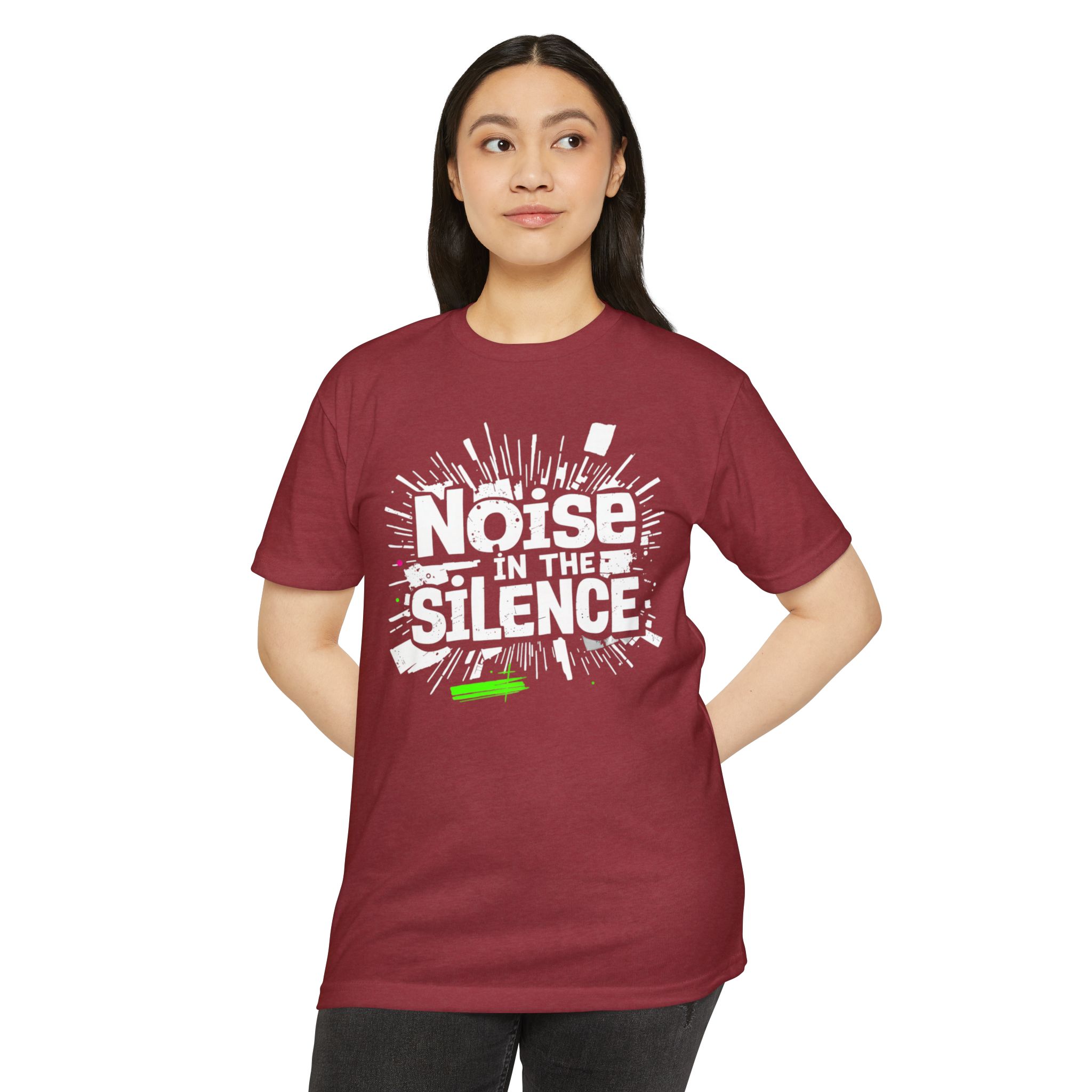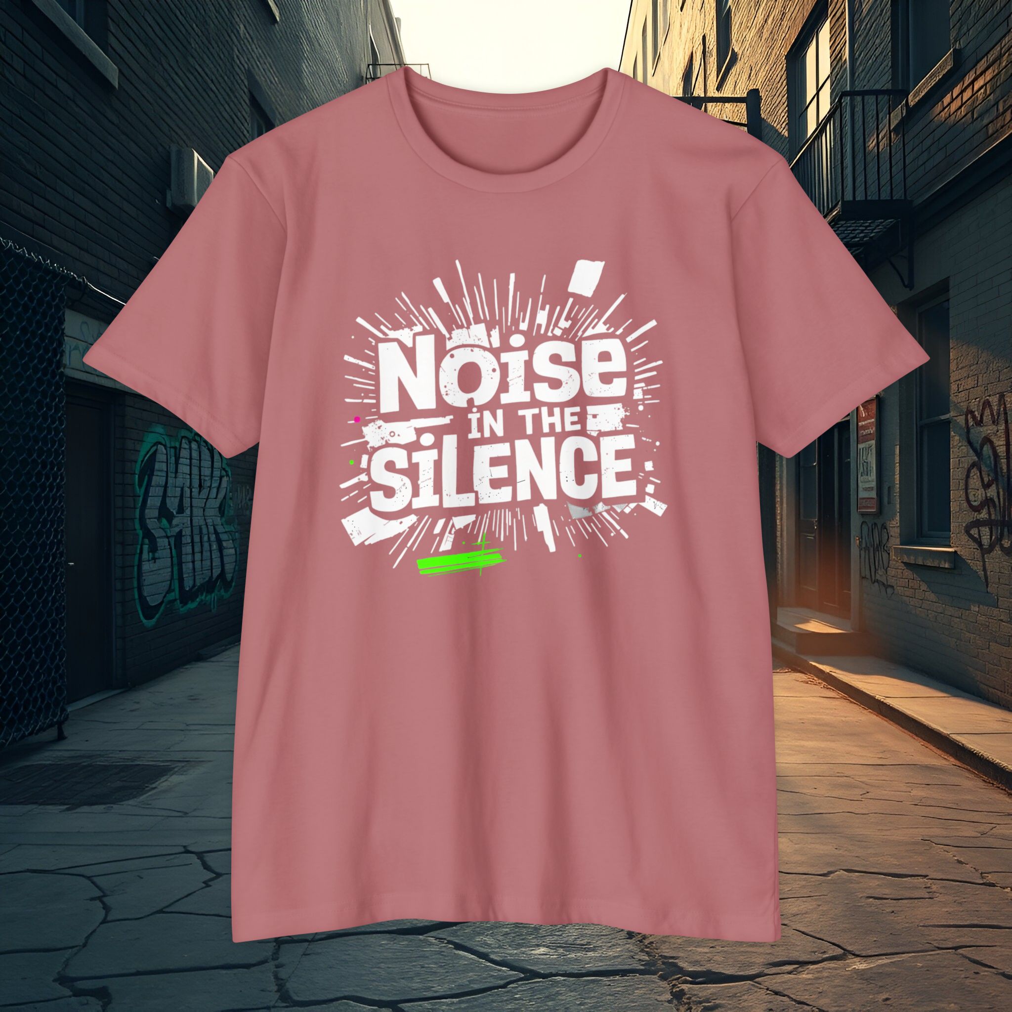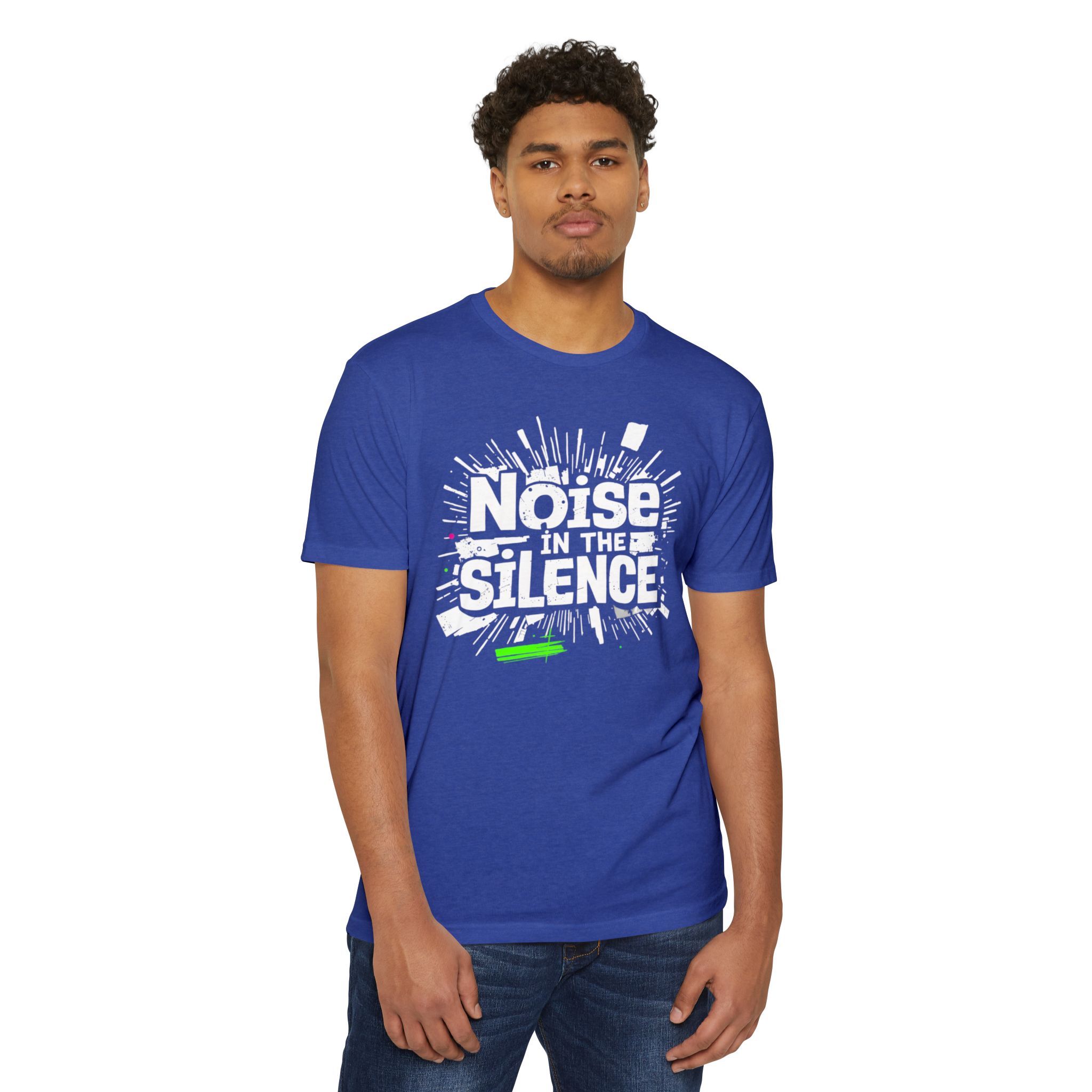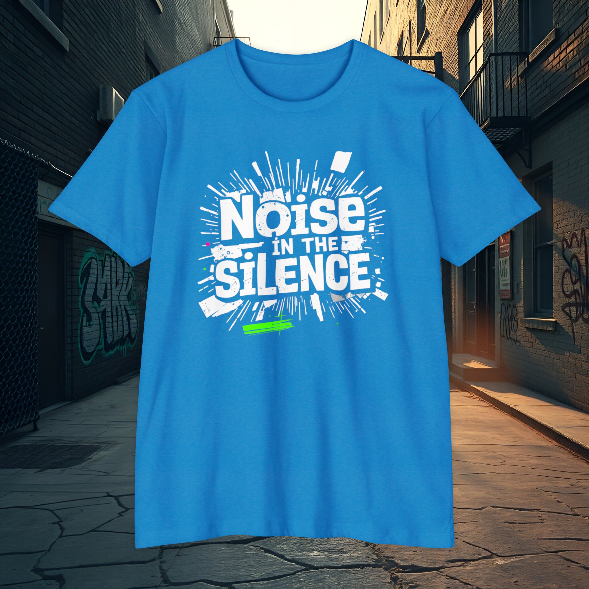 noise in the silence t-shirt, noise in the silence tee, music lover t-shirt, band tee, concert t shirt, graphic tee unisex, indie music t shirt, festival t shirt, casual streetwear tee, gift for music lover, CVC jersey t shirt, 60% combed cotton 40% poly tee, 4.3 oz t shirt, lightweight breathable tee, tear away label tee, noise in the silence