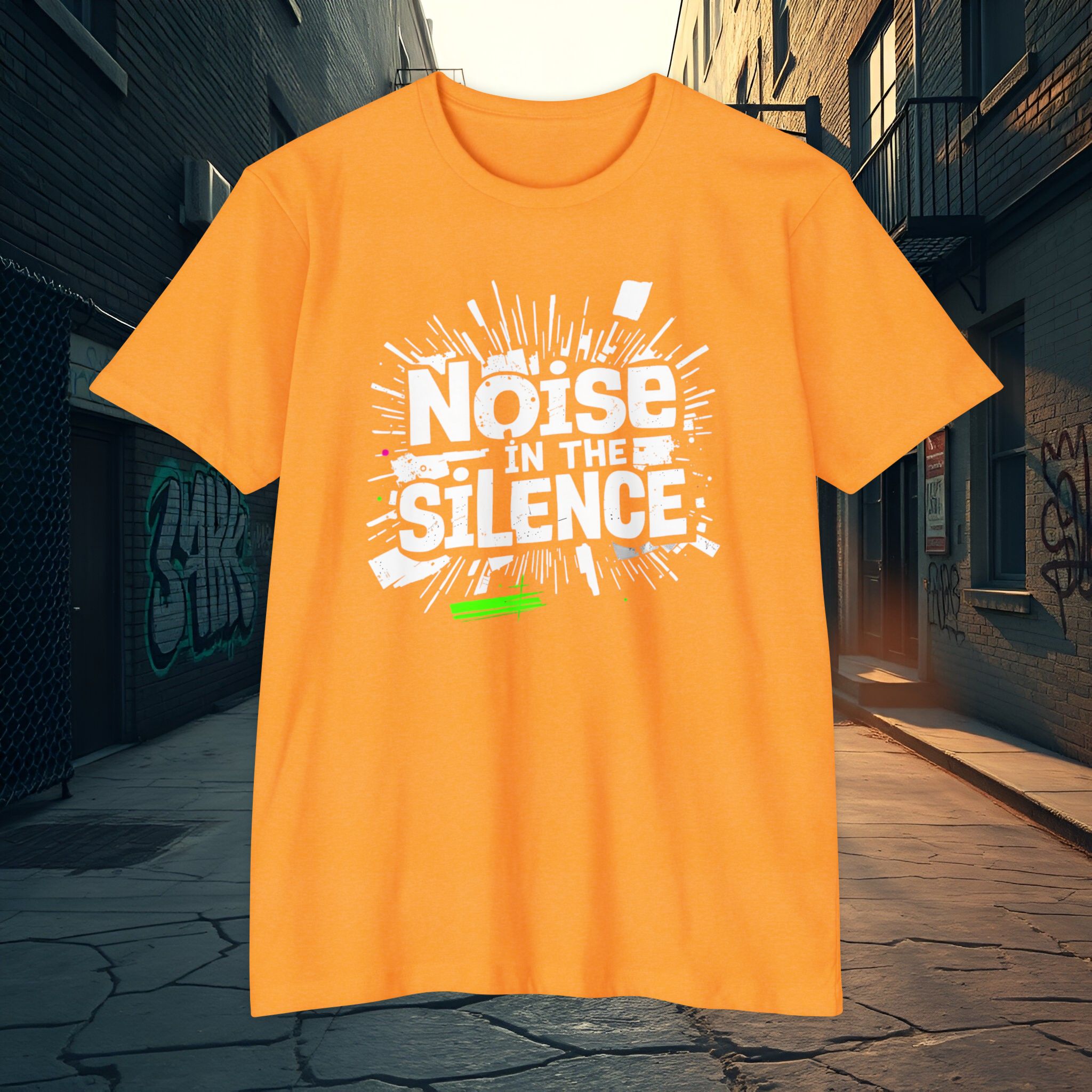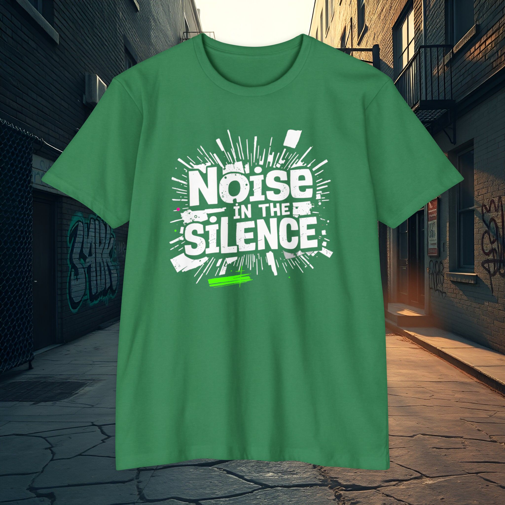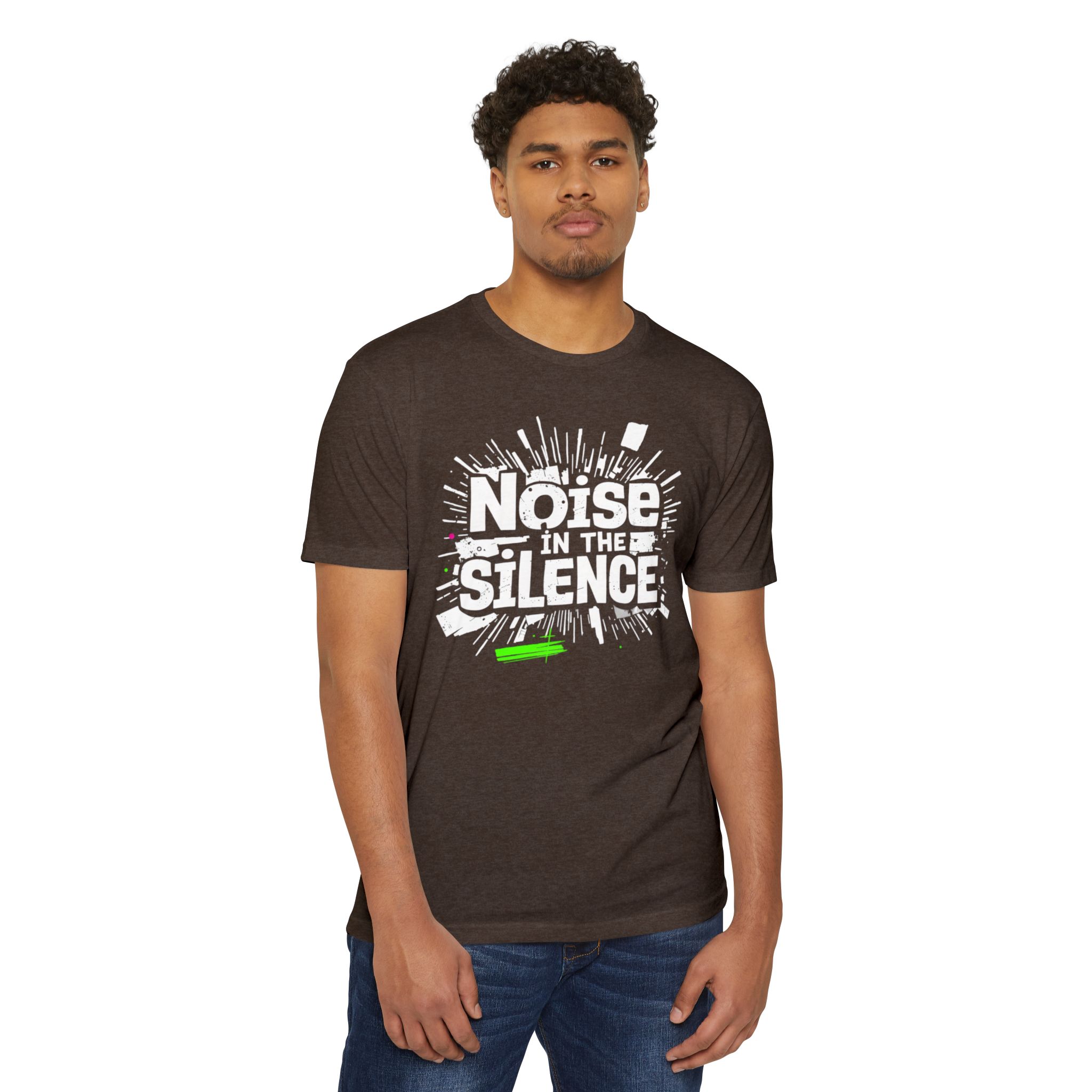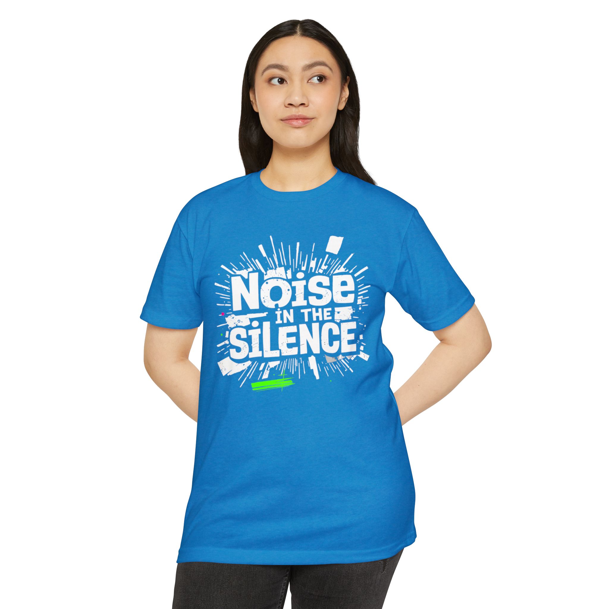 noise in the silence t-shirt, noise in the silence tee, music lover t-shirt, band tee, concert t shirt, graphic tee unisex, indie music t shirt, festival t shirt, casual streetwear tee, gift for music lover, CVC jersey t shirt, 60% combed cotton 40% poly tee, 4.3 oz t shirt, lightweight breathable tee, tear away label tee, noise in the silence