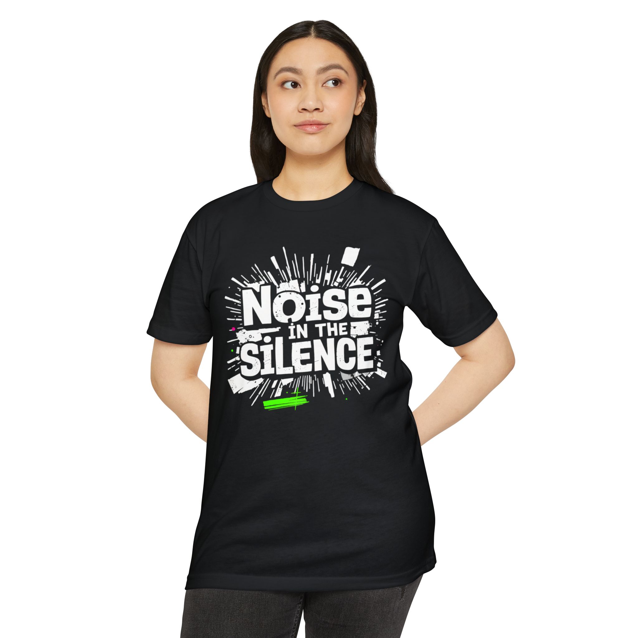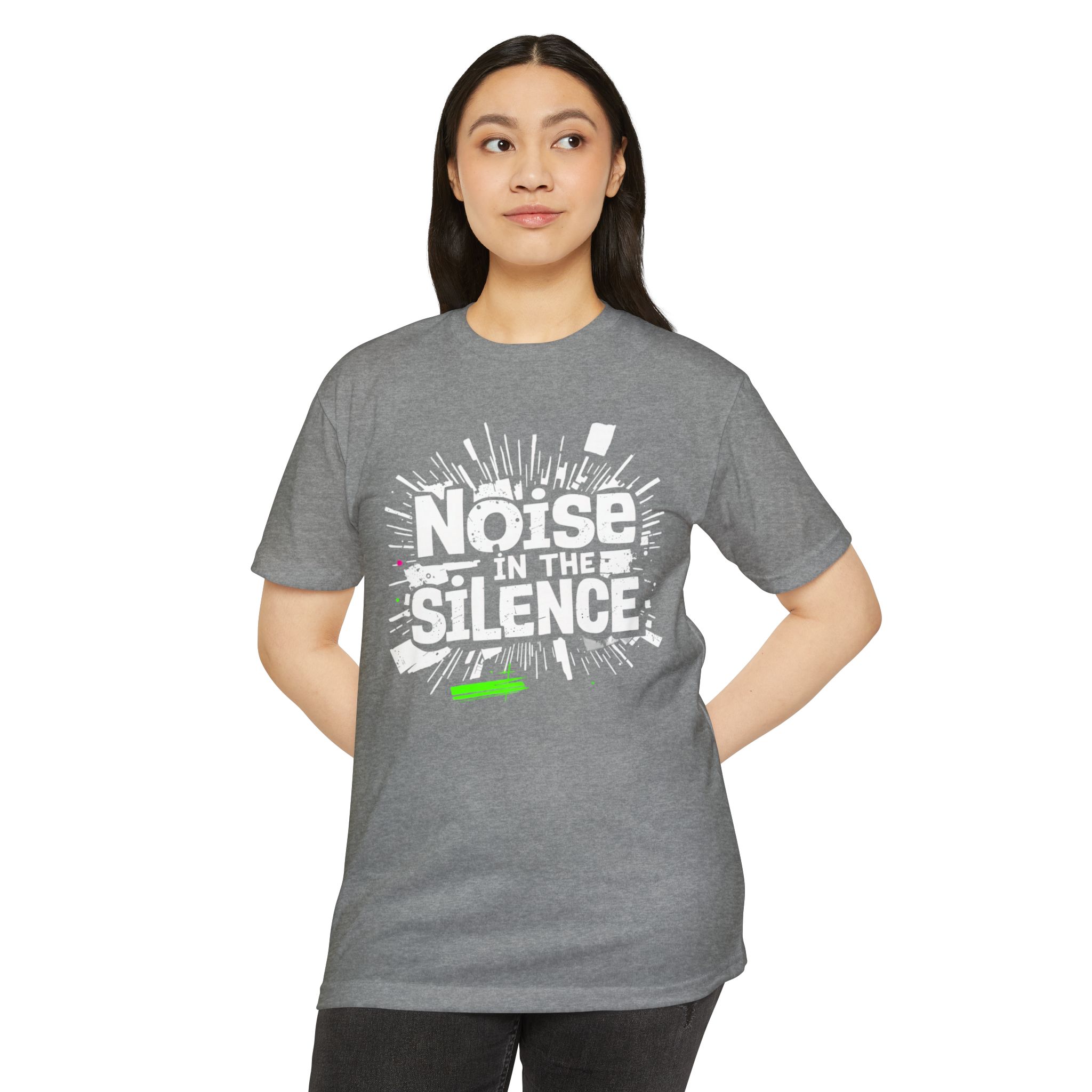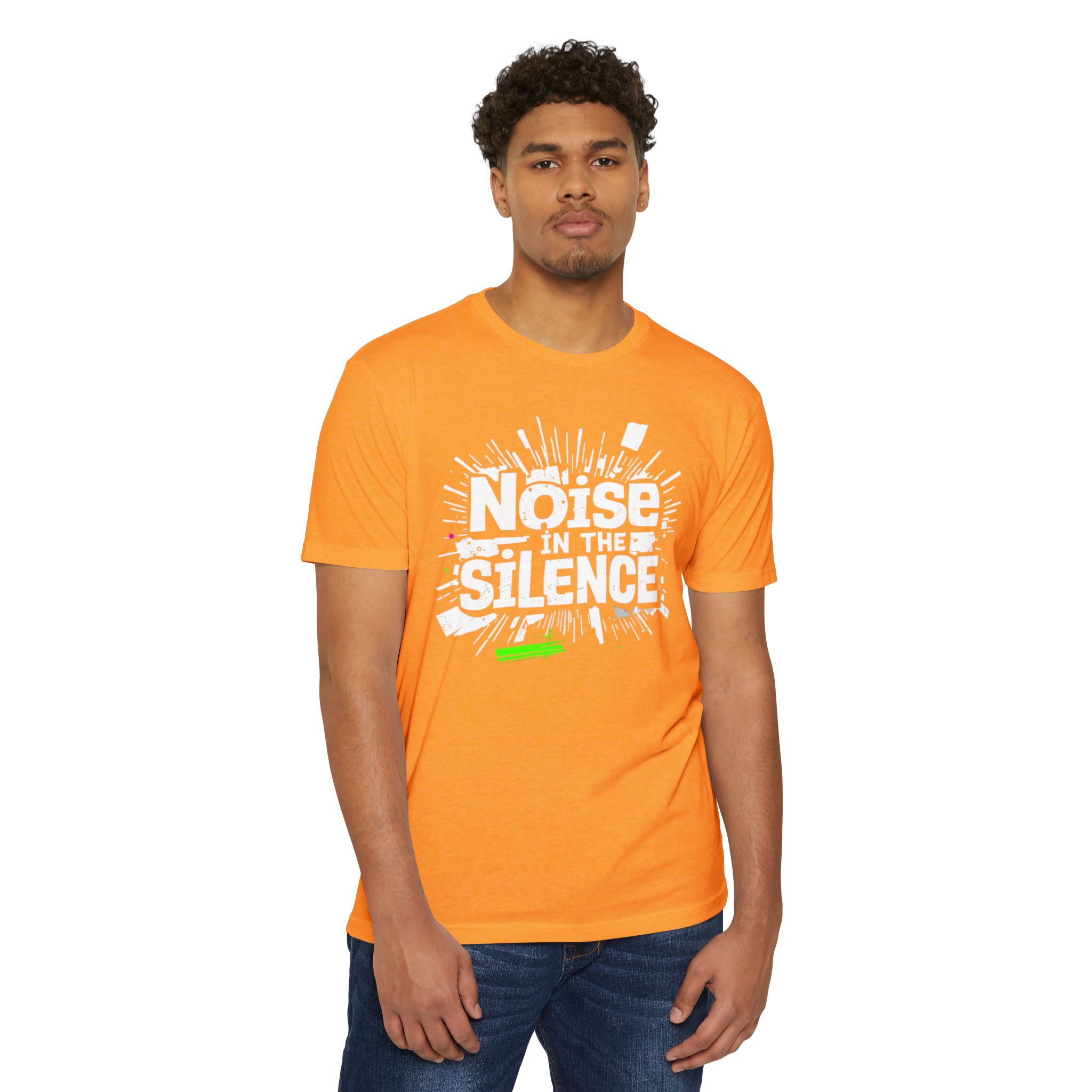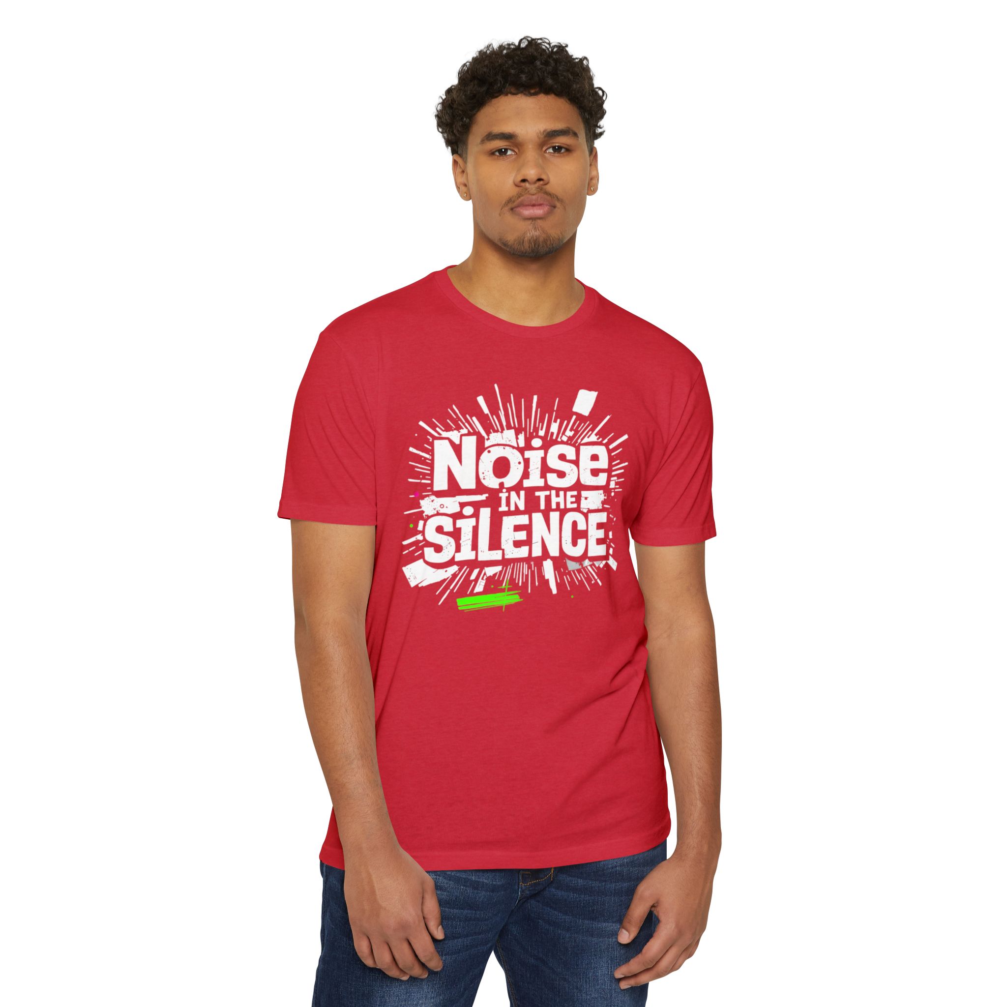 noise in the silence t-shirt, noise in the silence tee, music lover t-shirt, band tee, concert t shirt, graphic tee unisex, indie music t shirt, festival t shirt, casual streetwear tee, gift for music lover, CVC jersey t shirt, 60% combed cotton 40% poly tee, 4.3 oz t shirt, lightweight breathable tee, tear away label tee, noise in the silence