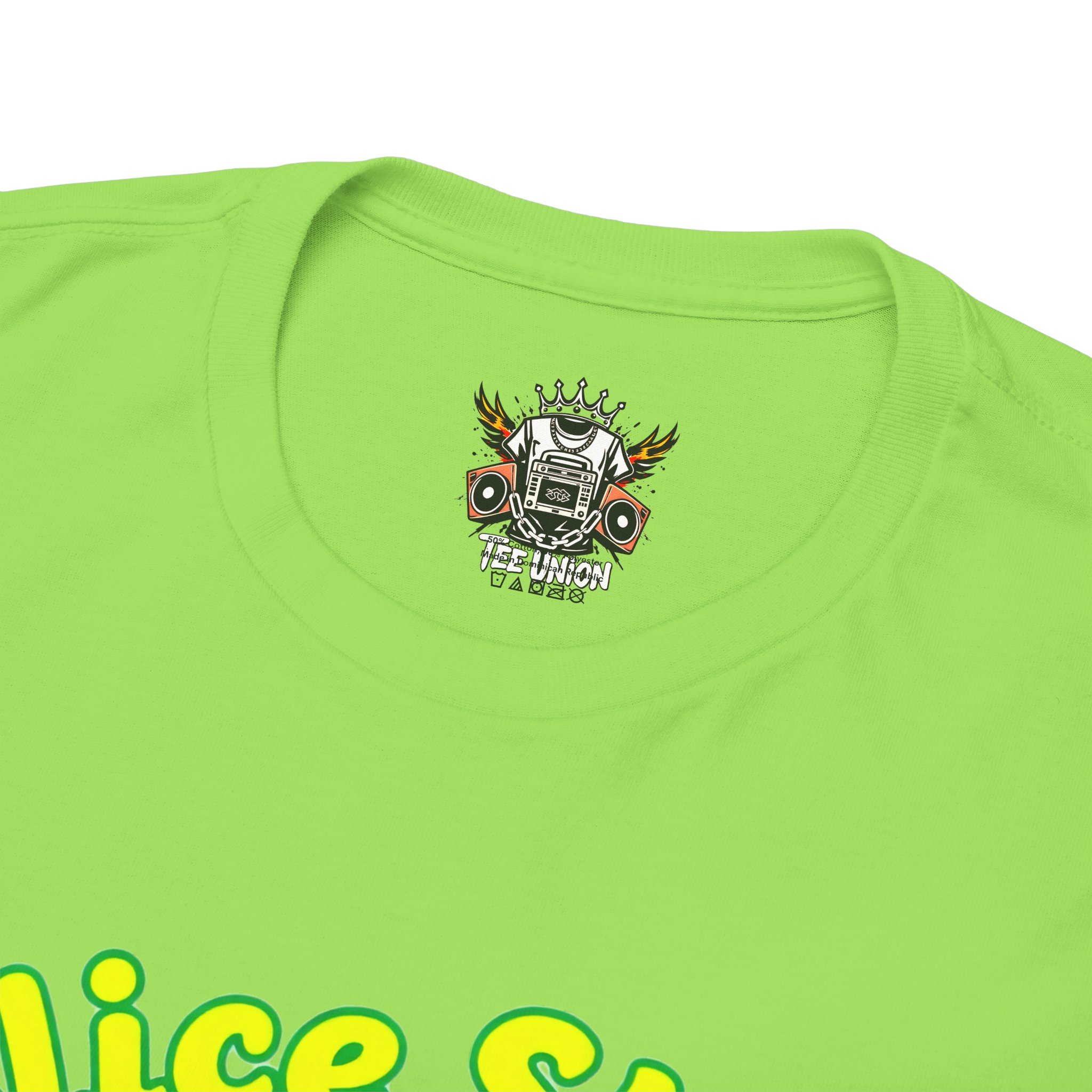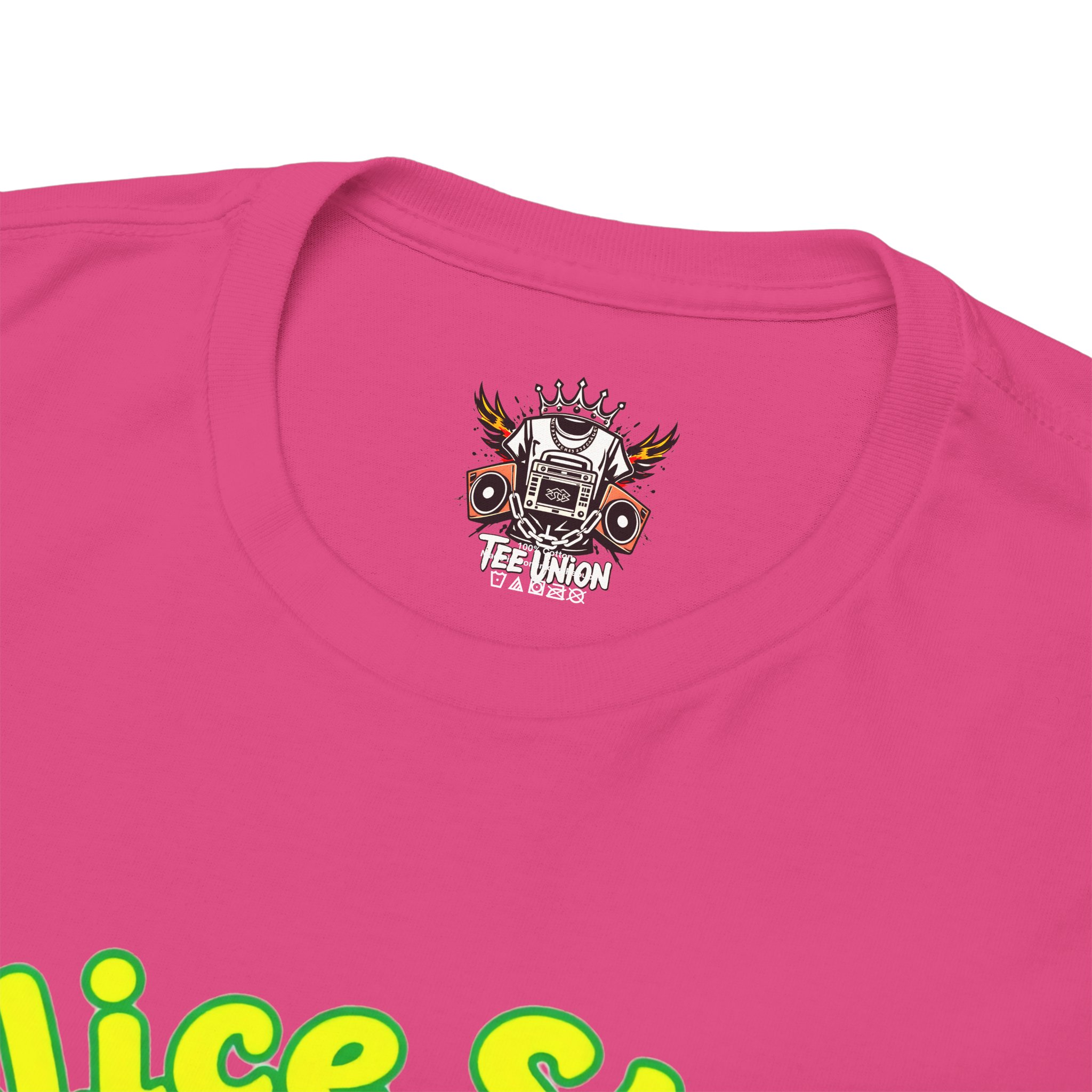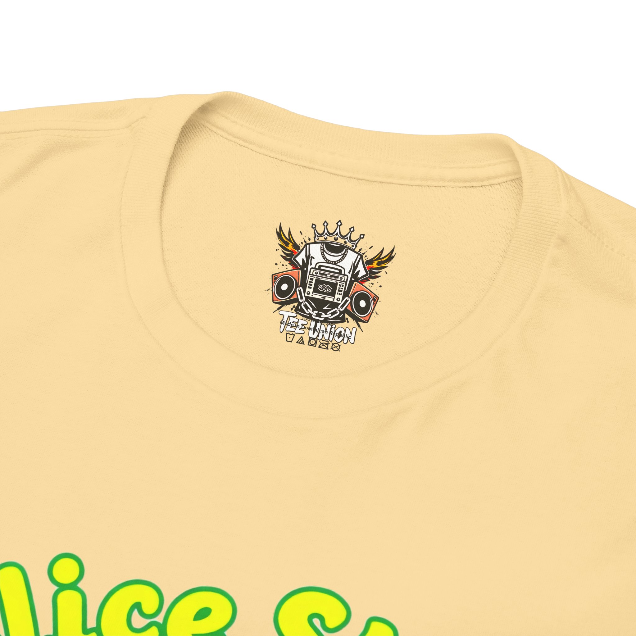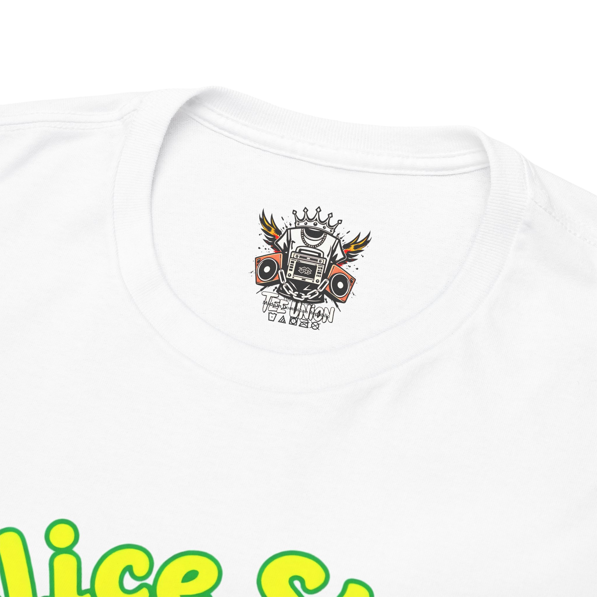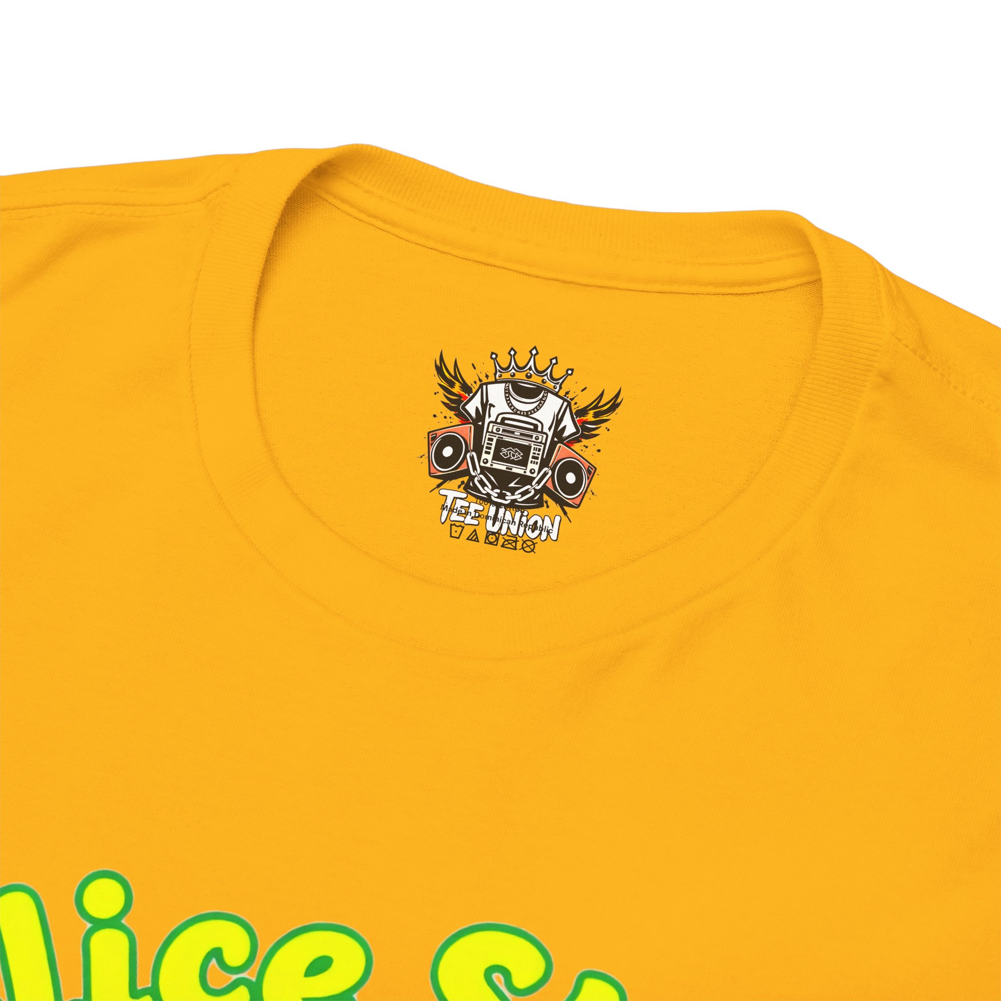 The Slice Slice Baby artwork was crafted to balance nostalgia and playful typography, inspired by retro hip-hop and pop culture references. We print using high-definition DTF/DTG techniques to ensure crisp edges and a soft hand on the fabric. The result is a graphic that looks great up close and reads clearly from a distance — ideal for events and daily wear.