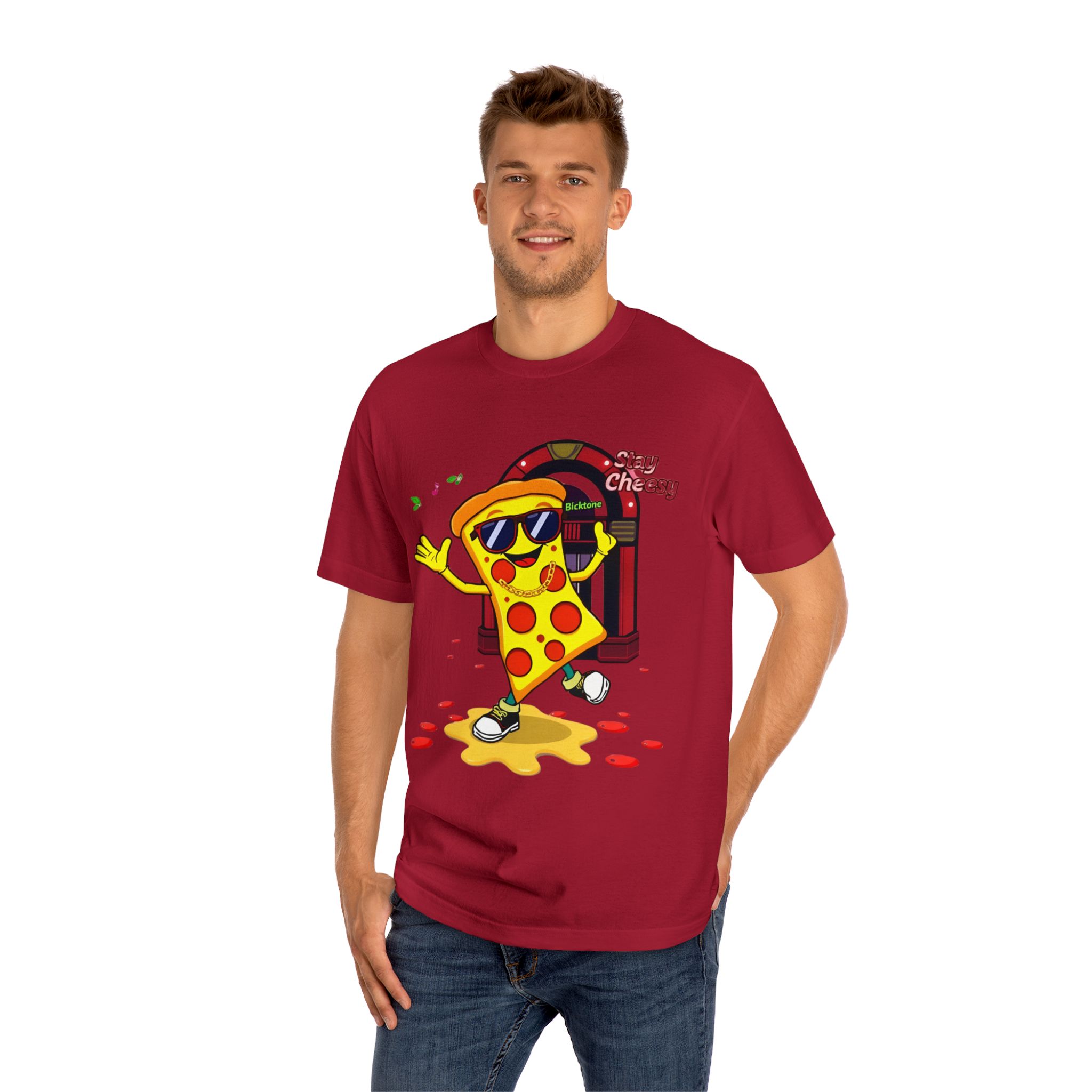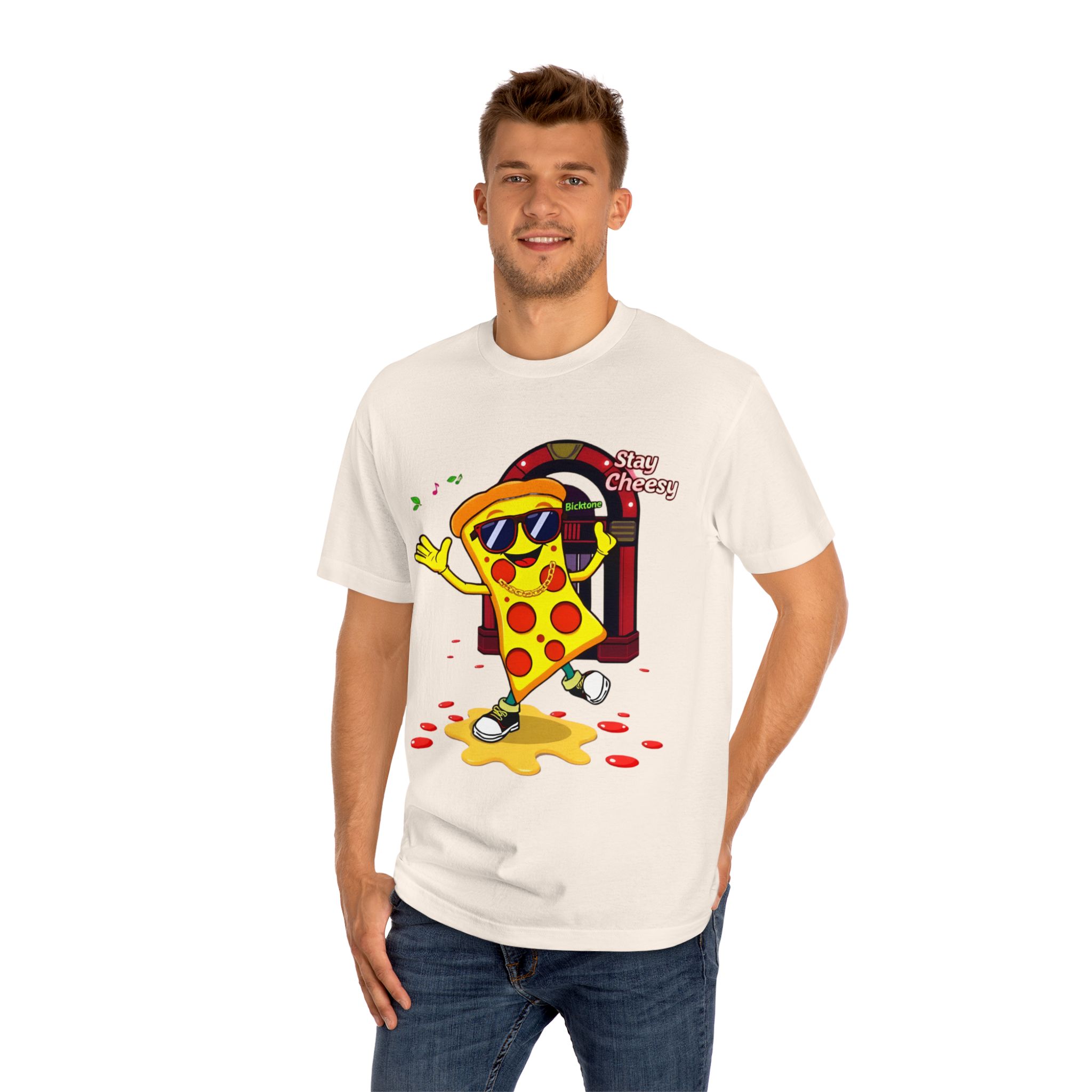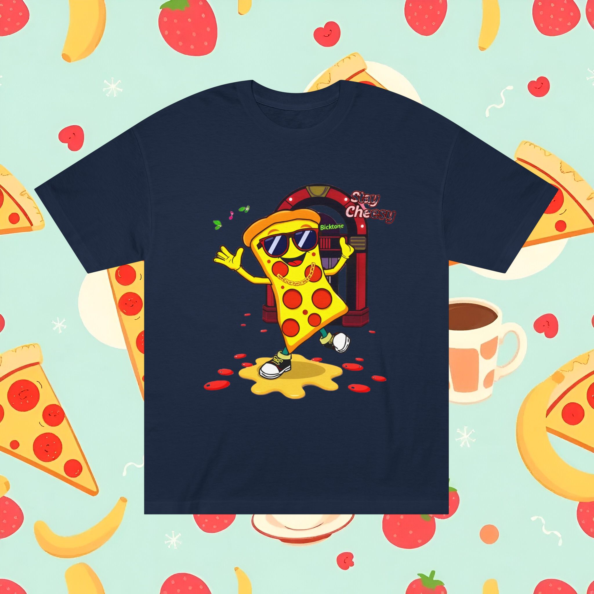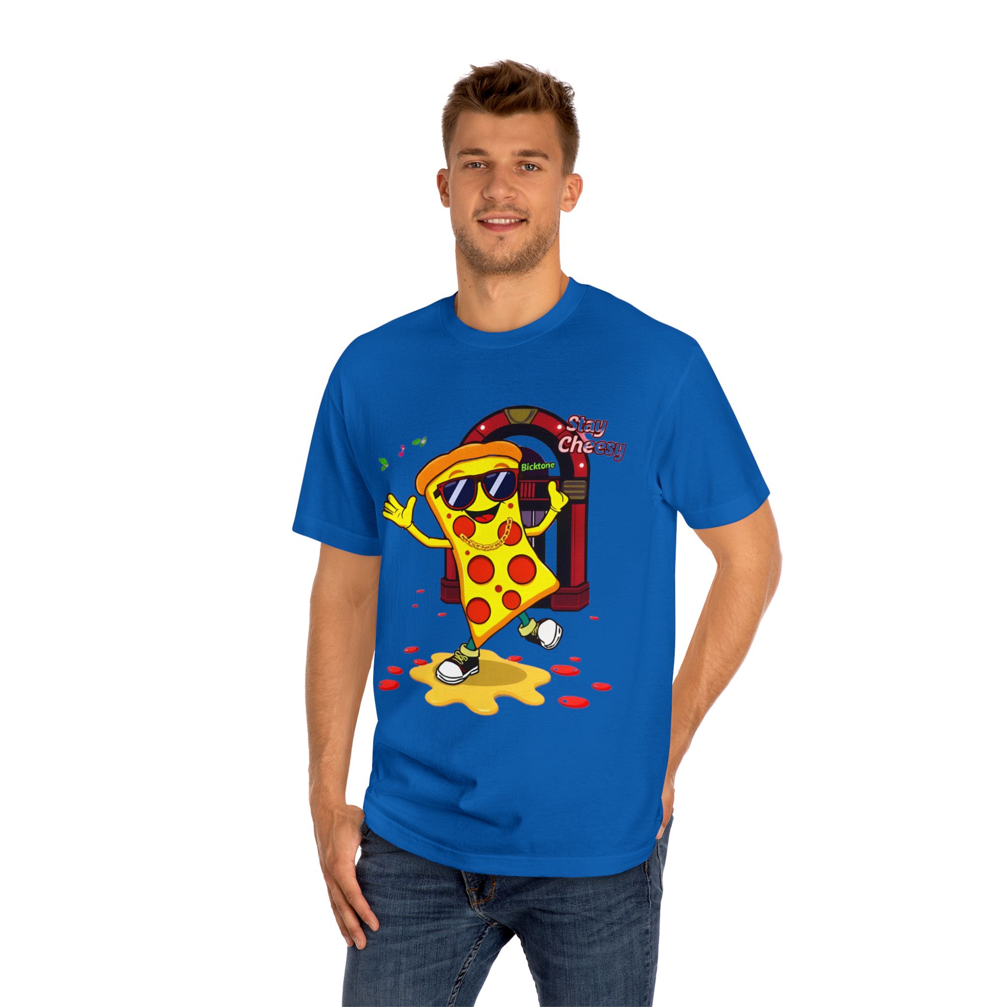 Pizza t-shirt is the playful staple every pizza lover reaches for when they want to wear their passion on their sleeve—literally. Featuring a cheerful “Stay Cheesy” pizza-slice mascot printed in vibrant inks on soft, breathable cotton, this unisex classic tee blends novelty charm with everyday comfort. Perfect for pizza nights, casual hangouts, festivals, and as a quirky gift, the Pizza t-shirt brings smiles wherever it goes.