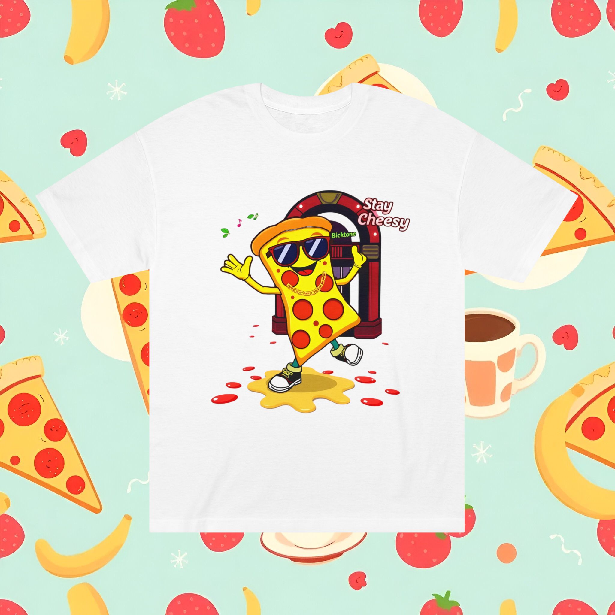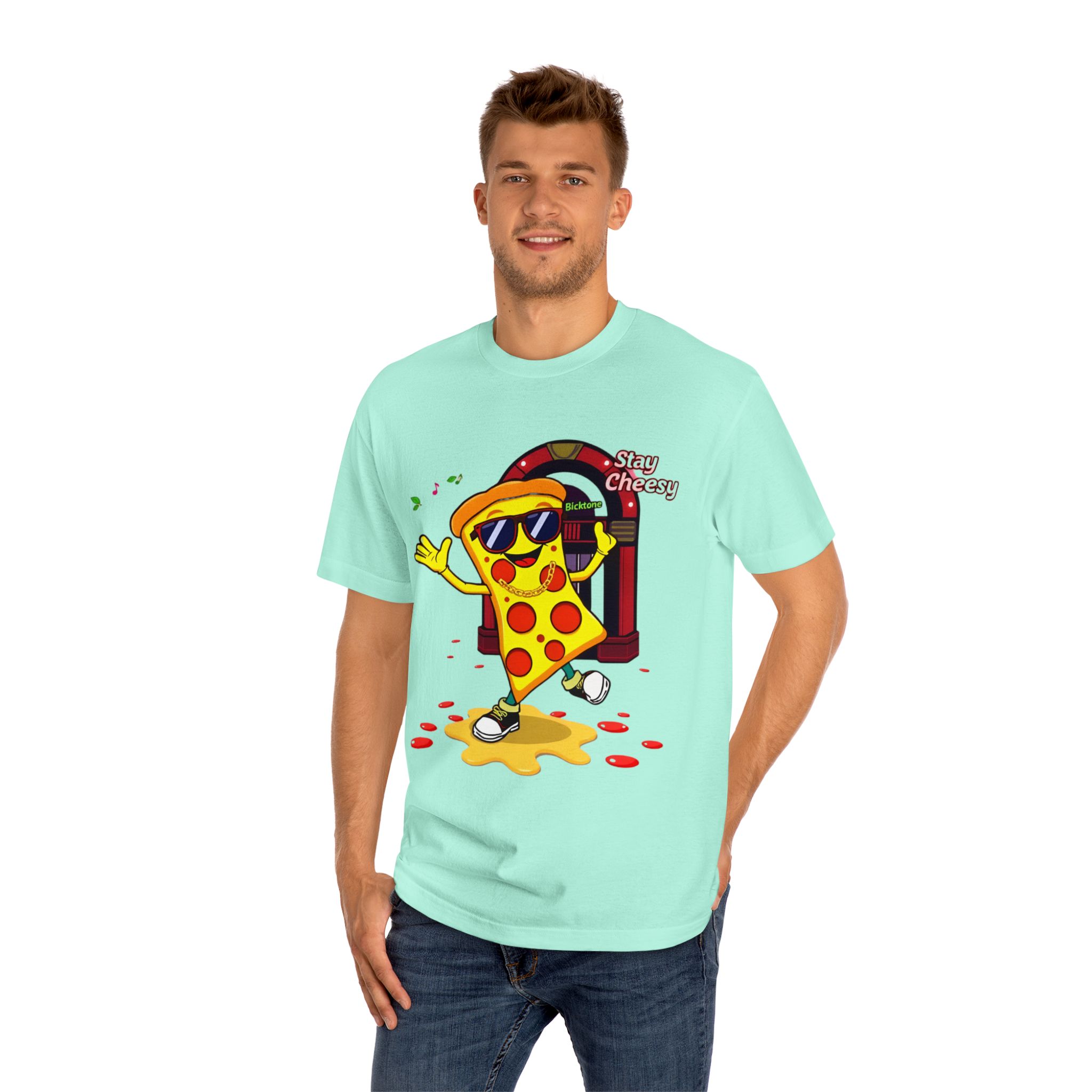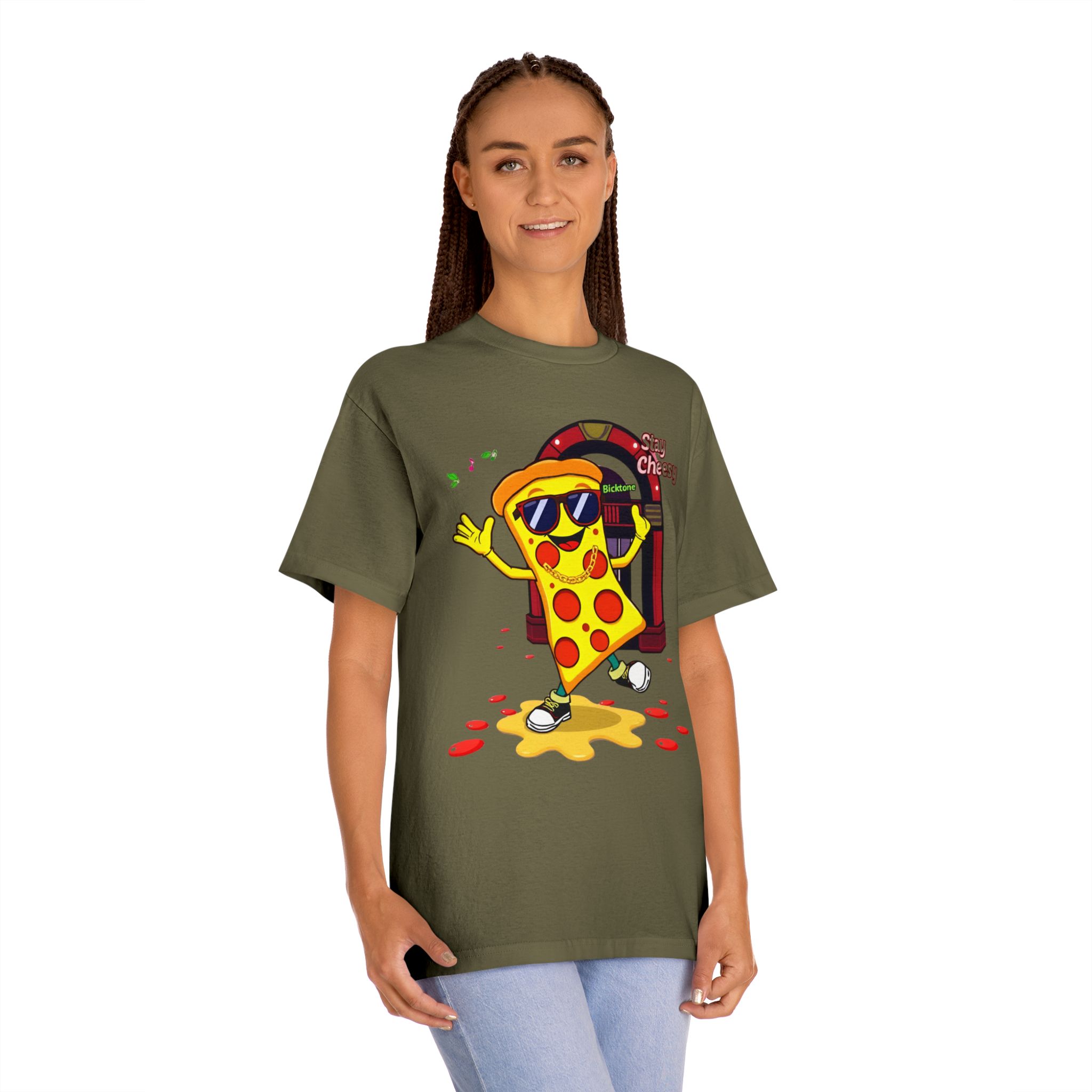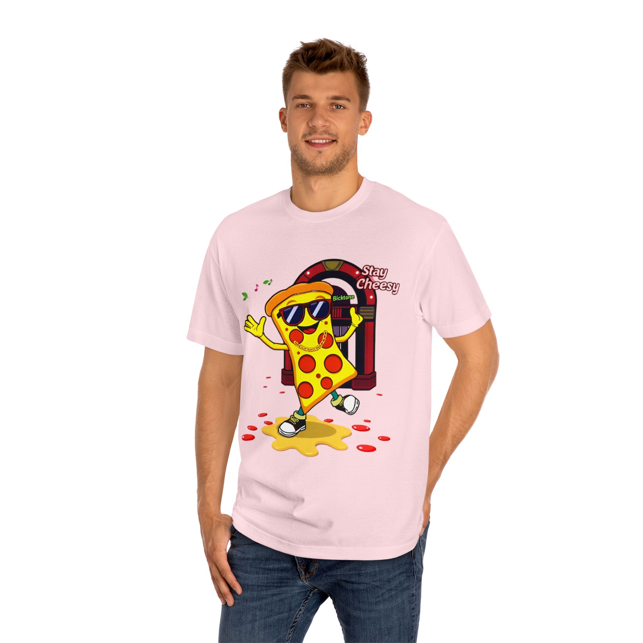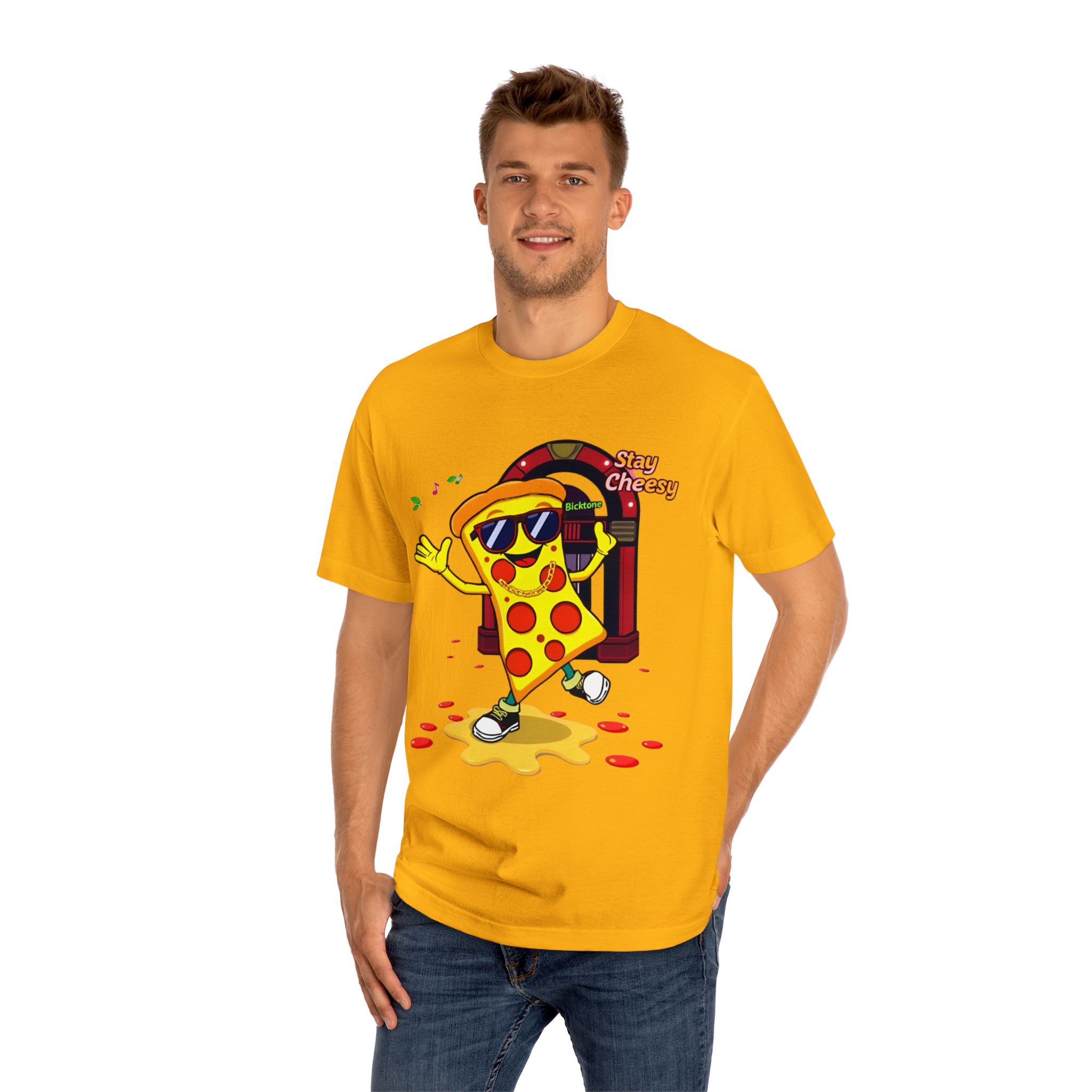Pizza t-shirt is the playful staple every pizza lover reaches for when they want to wear their passion on their sleeve—literally. Featuring a cheerful “Stay Cheesy” pizza-slice mascot printed in vibrant inks on soft, breathable cotton, this unisex classic tee blends novelty charm with everyday comfort. Perfect for pizza nights, casual hangouts, festivals, and as a quirky gift, the Pizza t-shirt brings smiles wherever it goes.