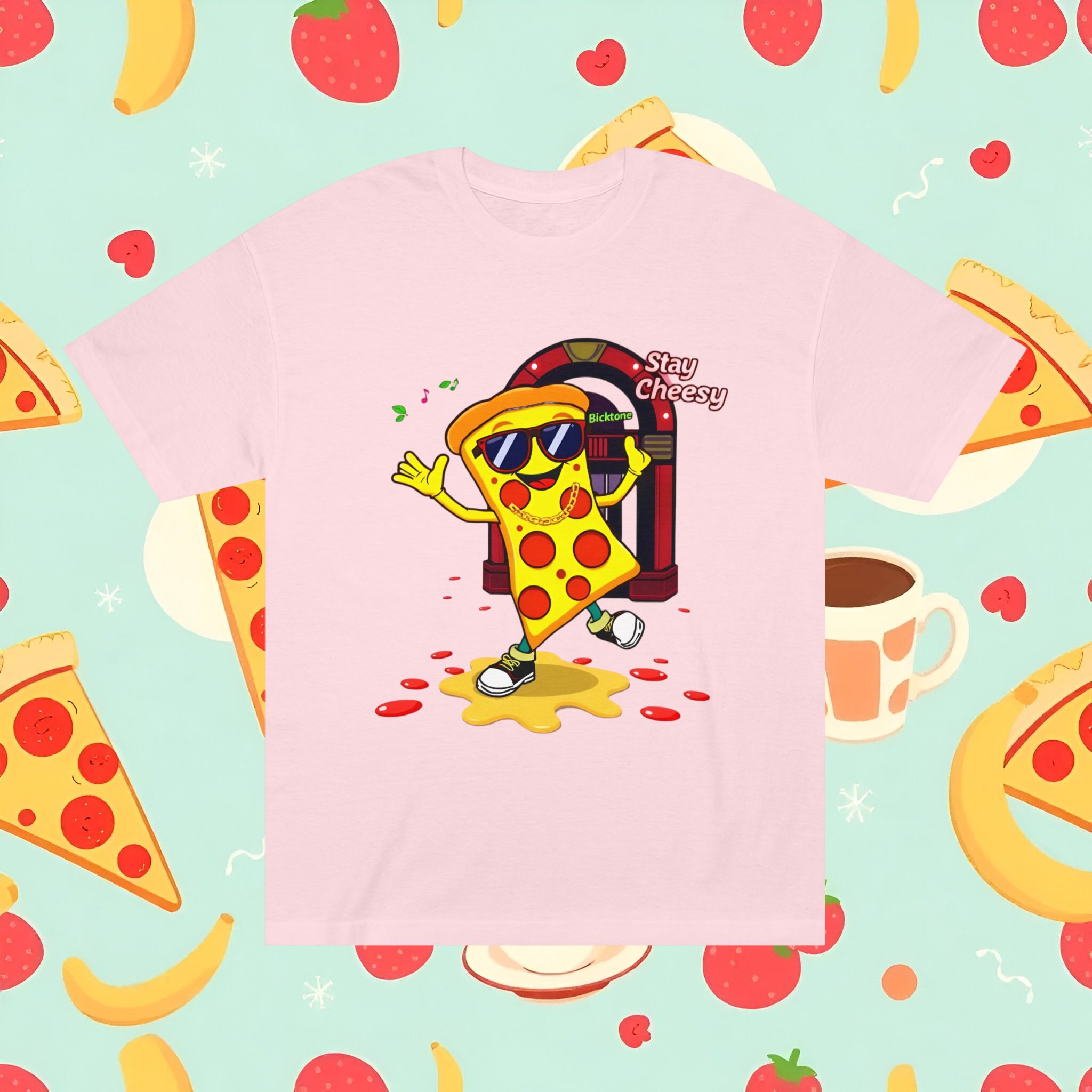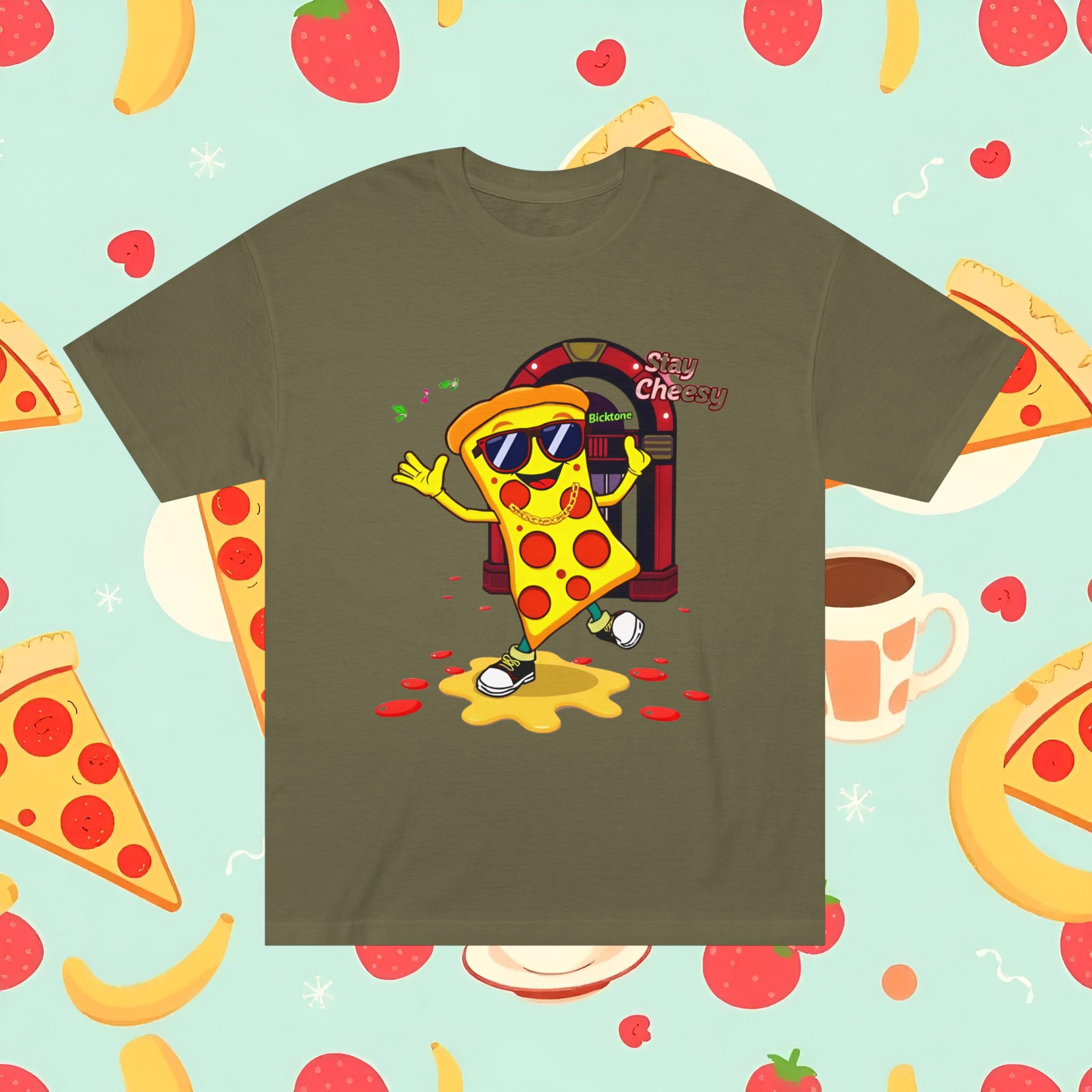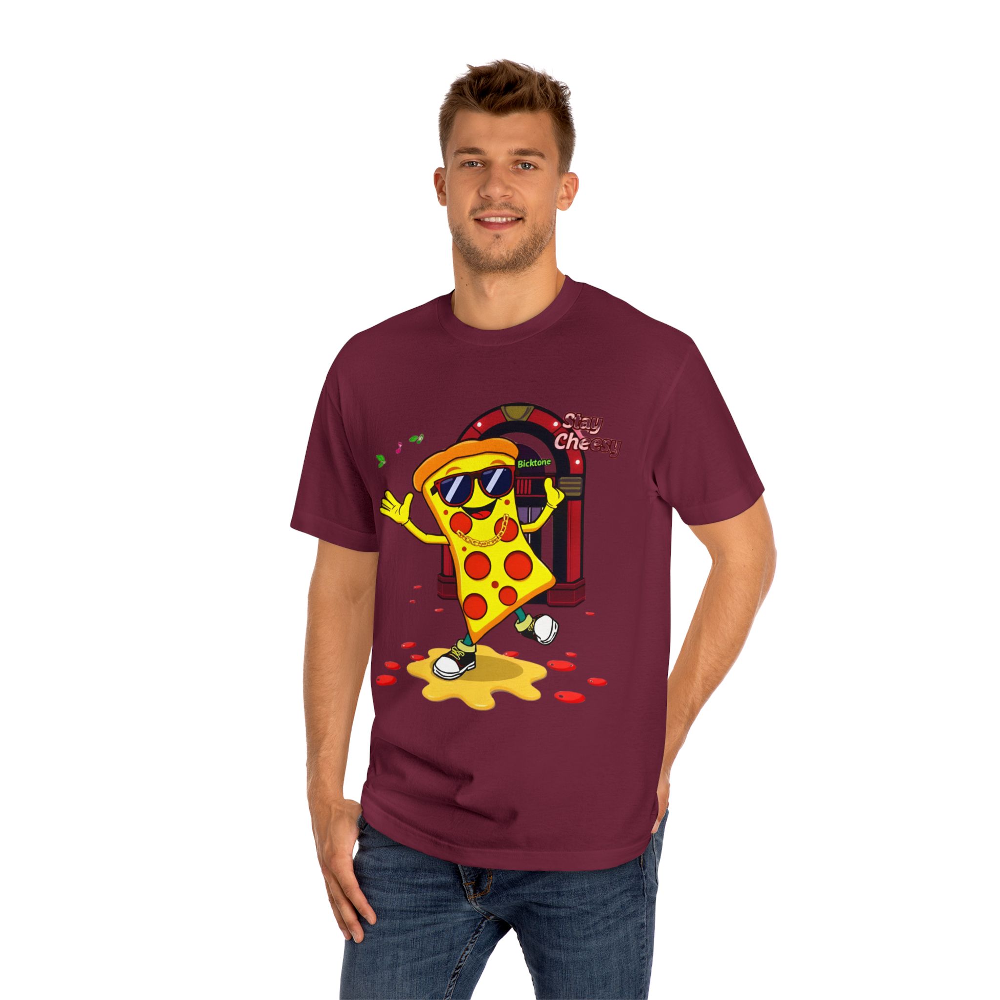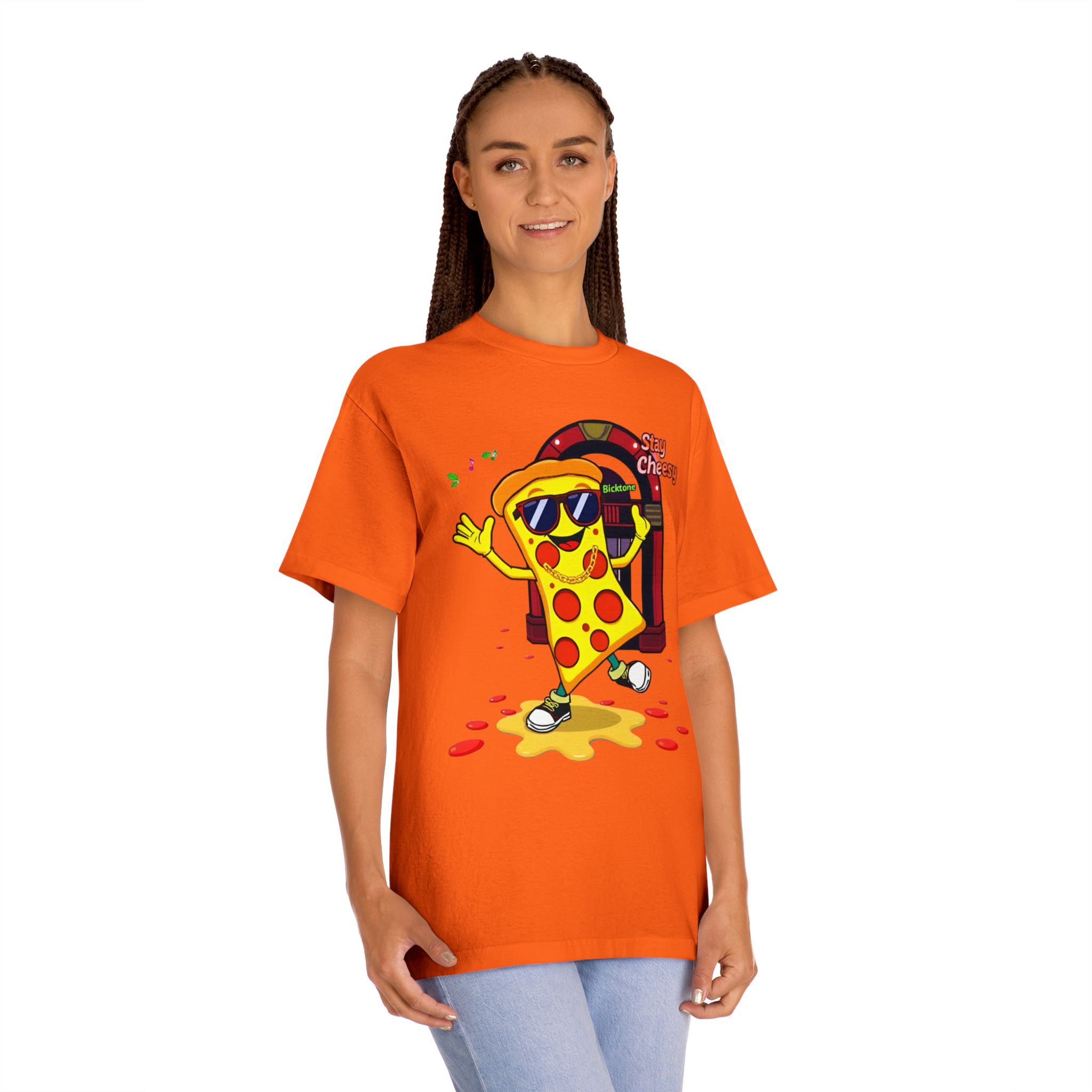 Pizza t-shirt is the playful staple every pizza lover reaches for when they want to wear their passion on their sleeve—literally. Featuring a cheerful “Stay Cheesy” pizza-slice mascot printed in vibrant inks on soft, breathable cotton, this unisex classic tee blends novelty charm with everyday comfort. Perfect for pizza nights, casual hangouts, festivals, and as a quirky gift, the Pizza t-shirt brings smiles wherever it goes.