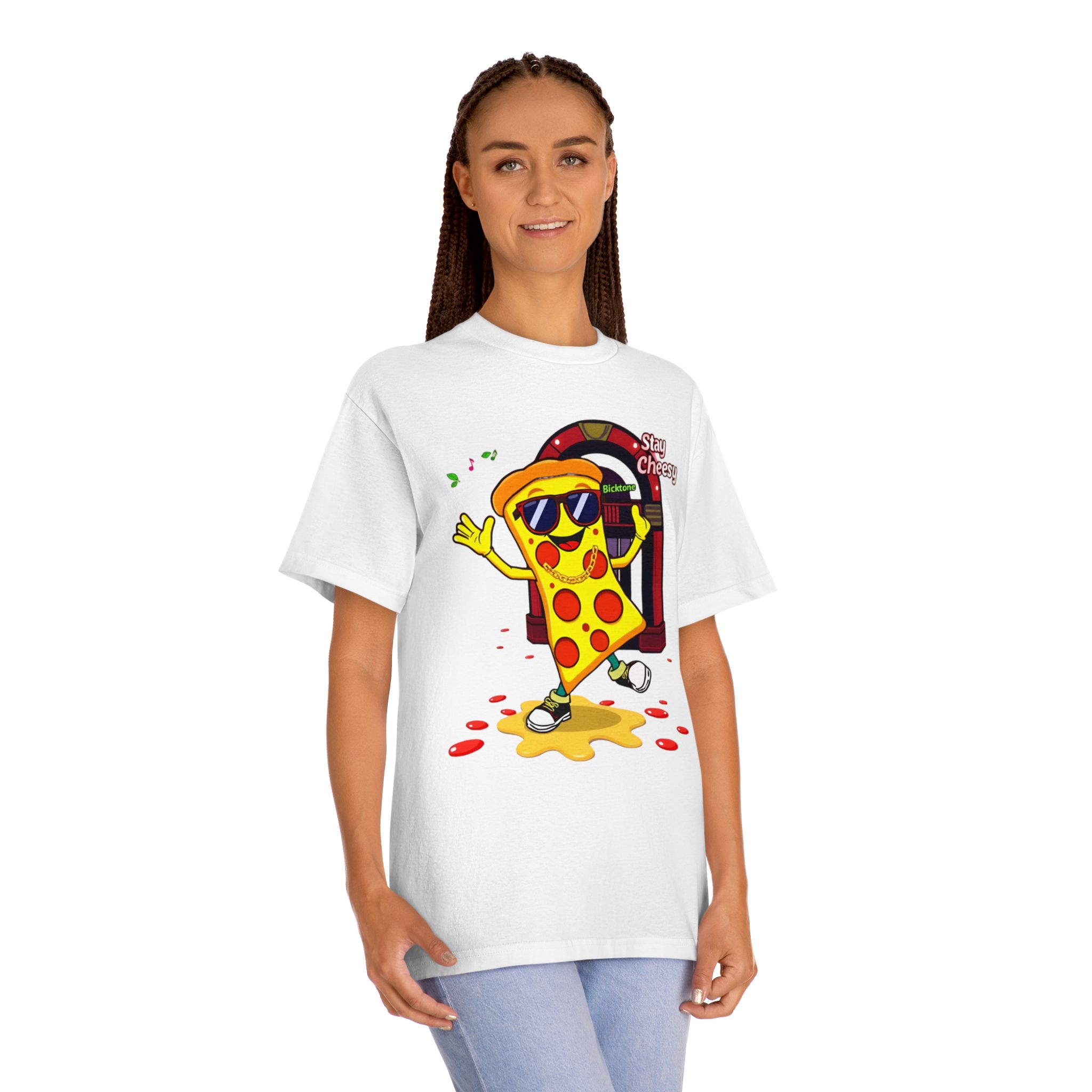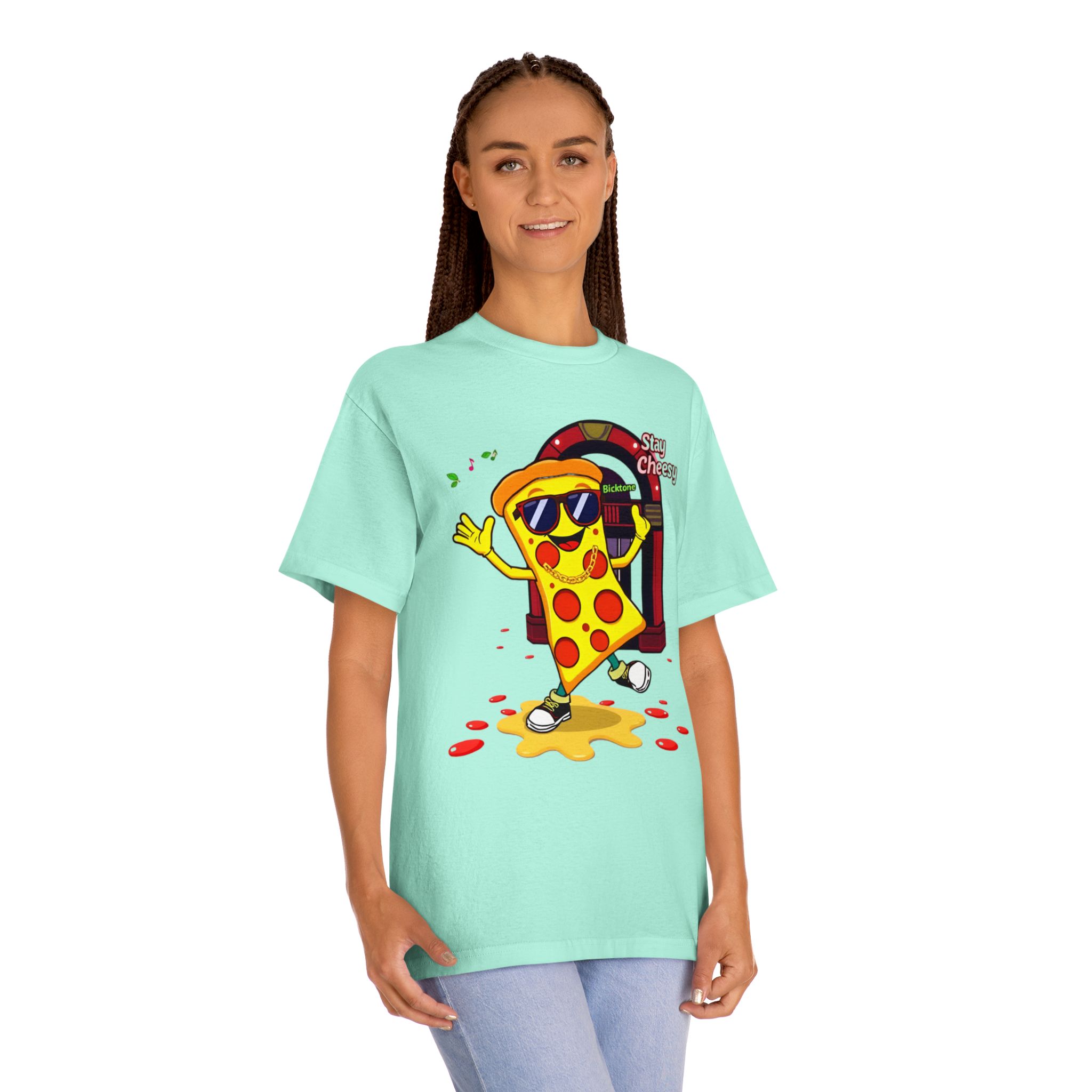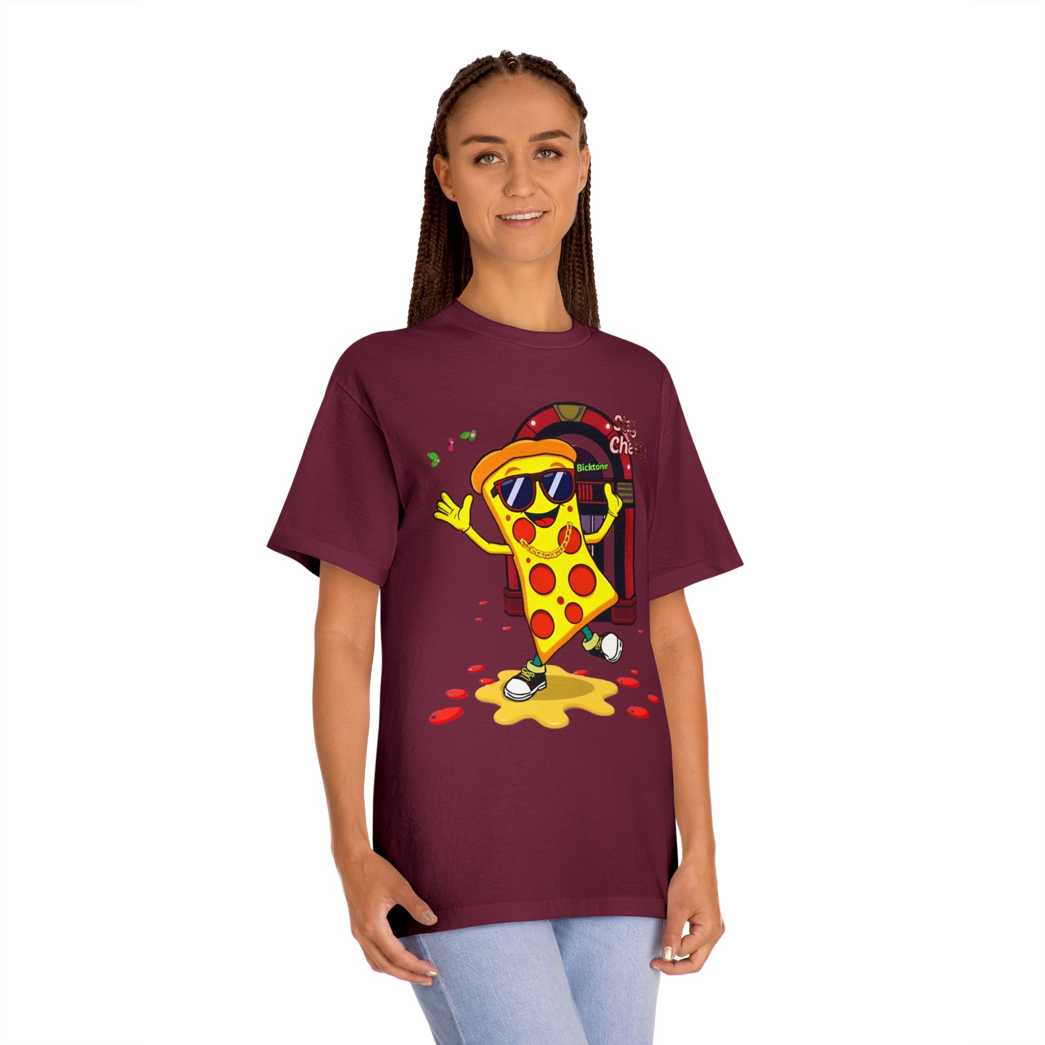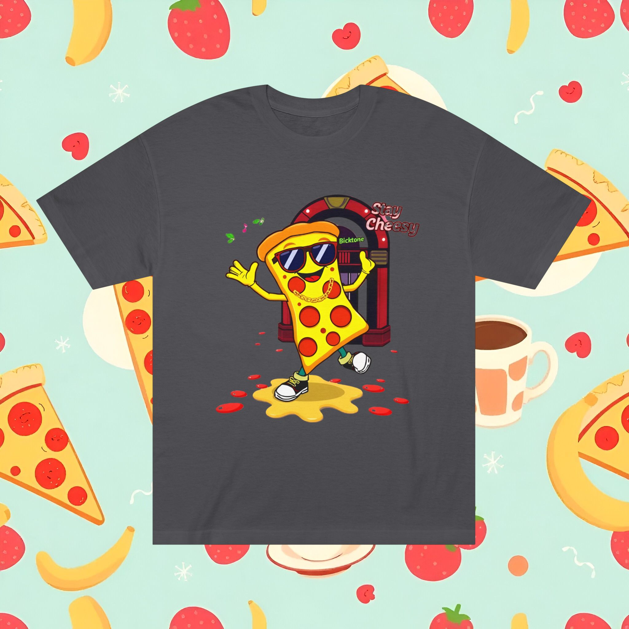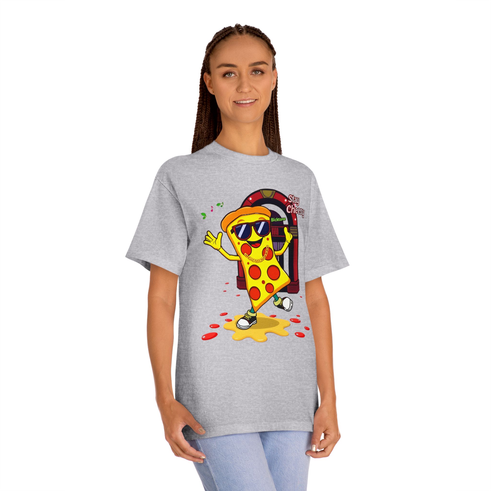 Pizza t-shirt is the playful staple every pizza lover reaches for when they want to wear their passion on their sleeve—literally. Featuring a cheerful “Stay Cheesy” pizza-slice mascot printed in vibrant inks on soft, breathable cotton, this unisex classic tee blends novelty charm with everyday comfort. Perfect for pizza nights, casual hangouts, festivals, and as a quirky gift, the Pizza t-shirt brings smiles wherever it goes.