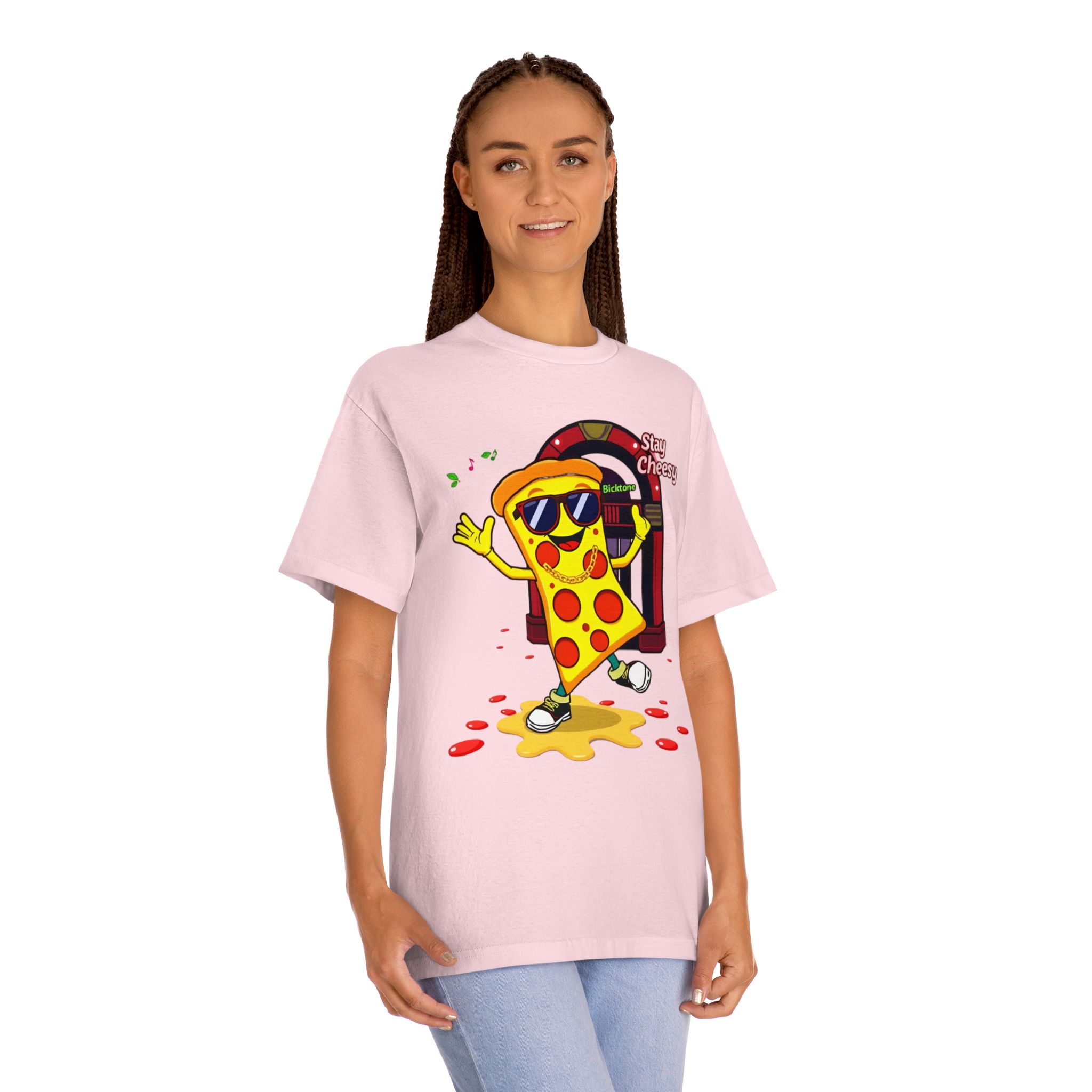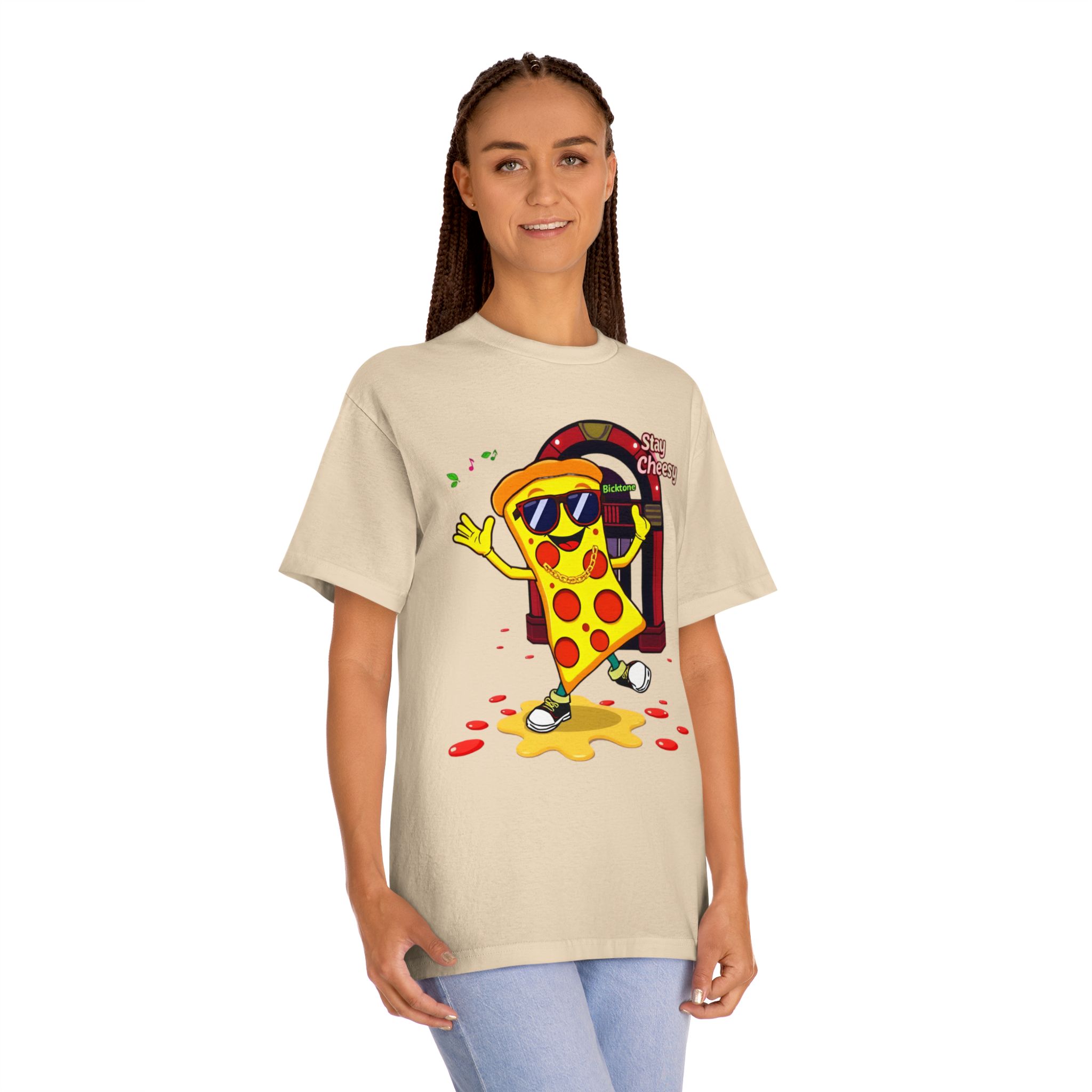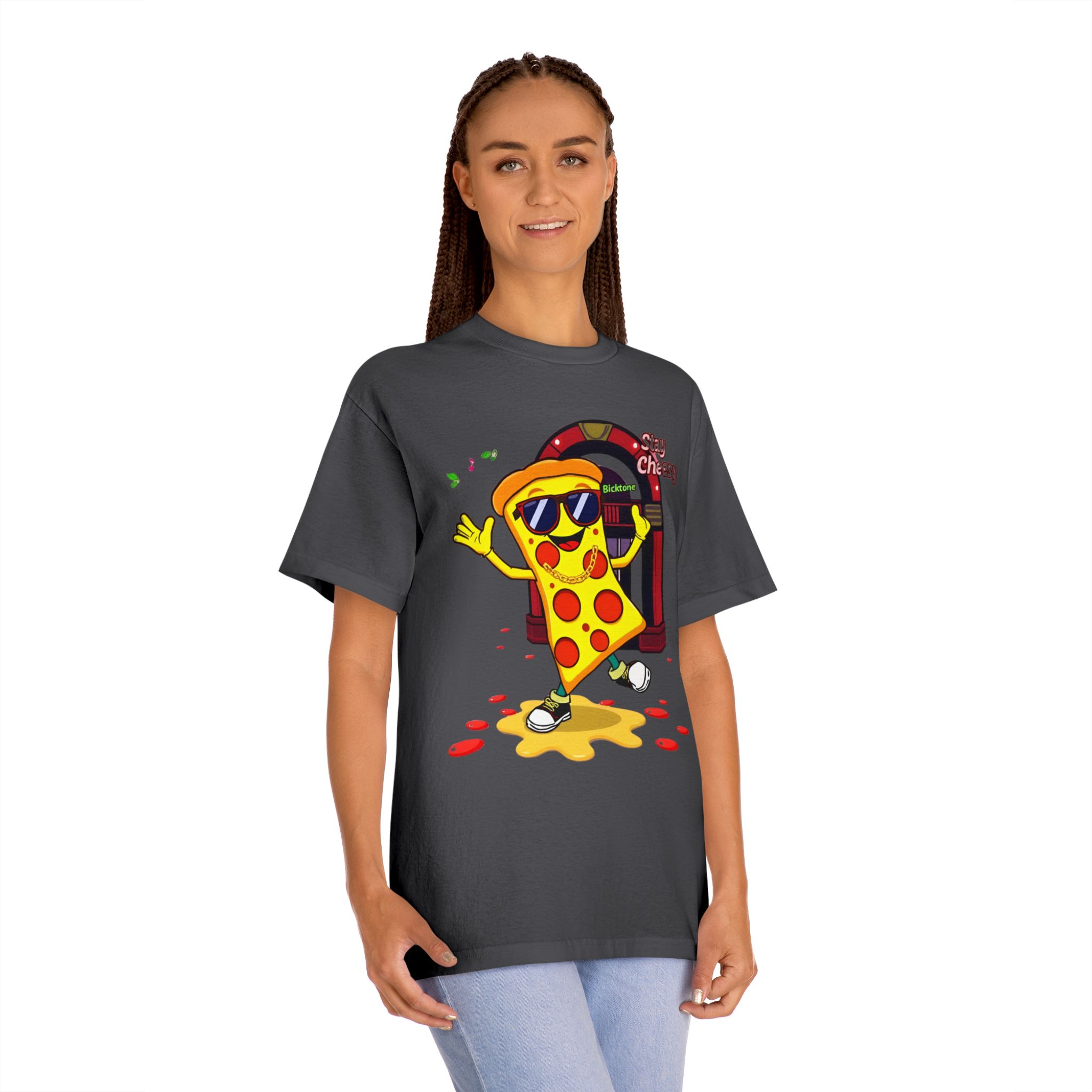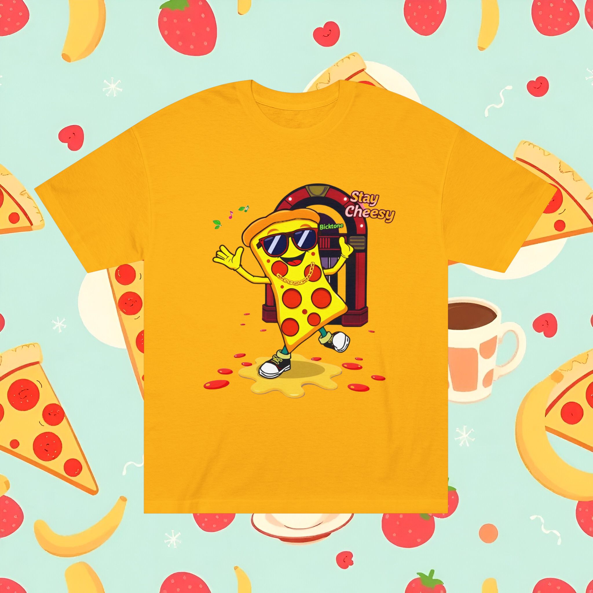 Pizza t-shirt is the playful staple every pizza lover reaches for when they want to wear their passion on their sleeve—literally. Featuring a cheerful “Stay Cheesy” pizza-slice mascot printed in vibrant inks on soft, breathable cotton, this unisex classic tee blends novelty charm with everyday comfort. Perfect for pizza nights, casual hangouts, festivals, and as a quirky gift, the Pizza t-shirt brings smiles wherever it goes.