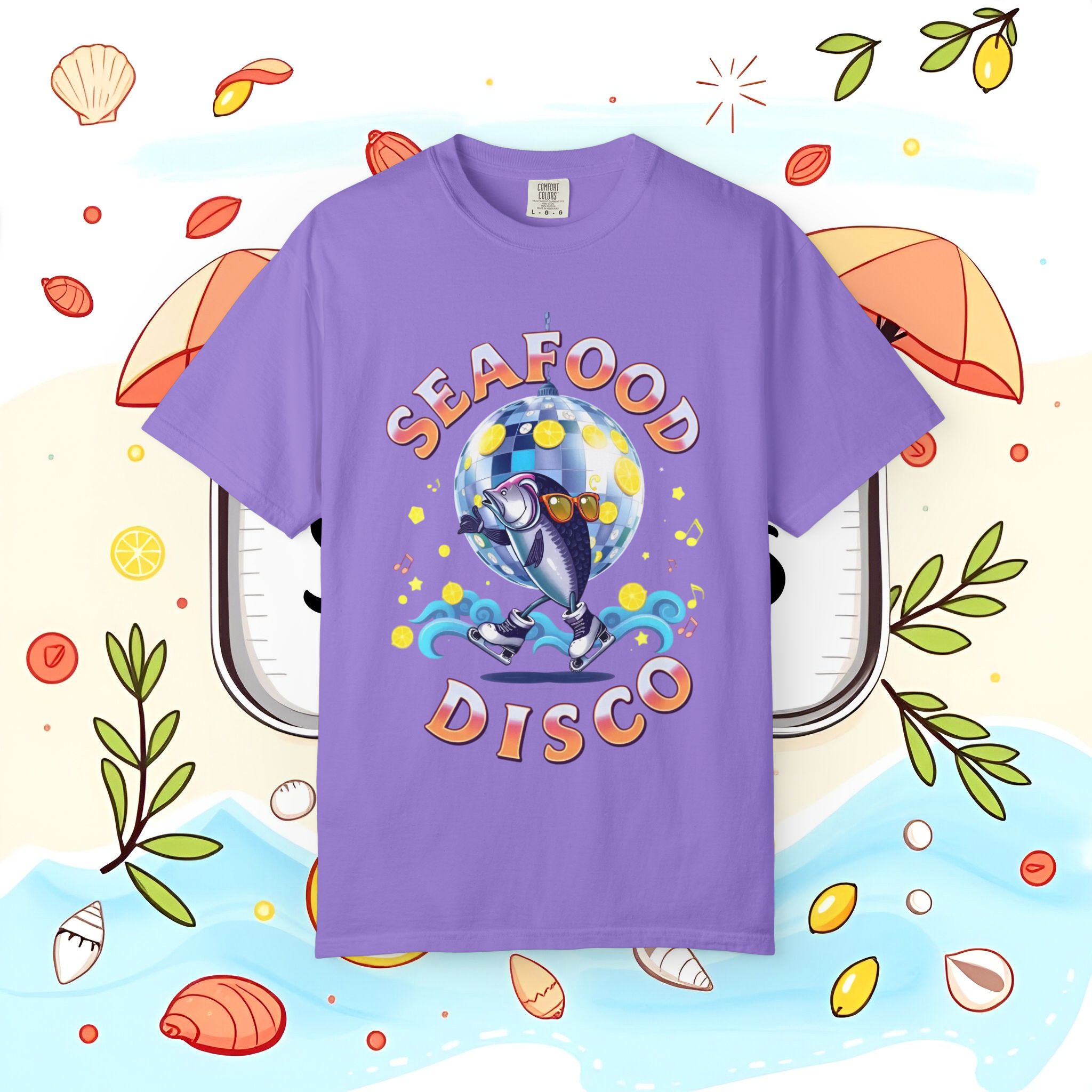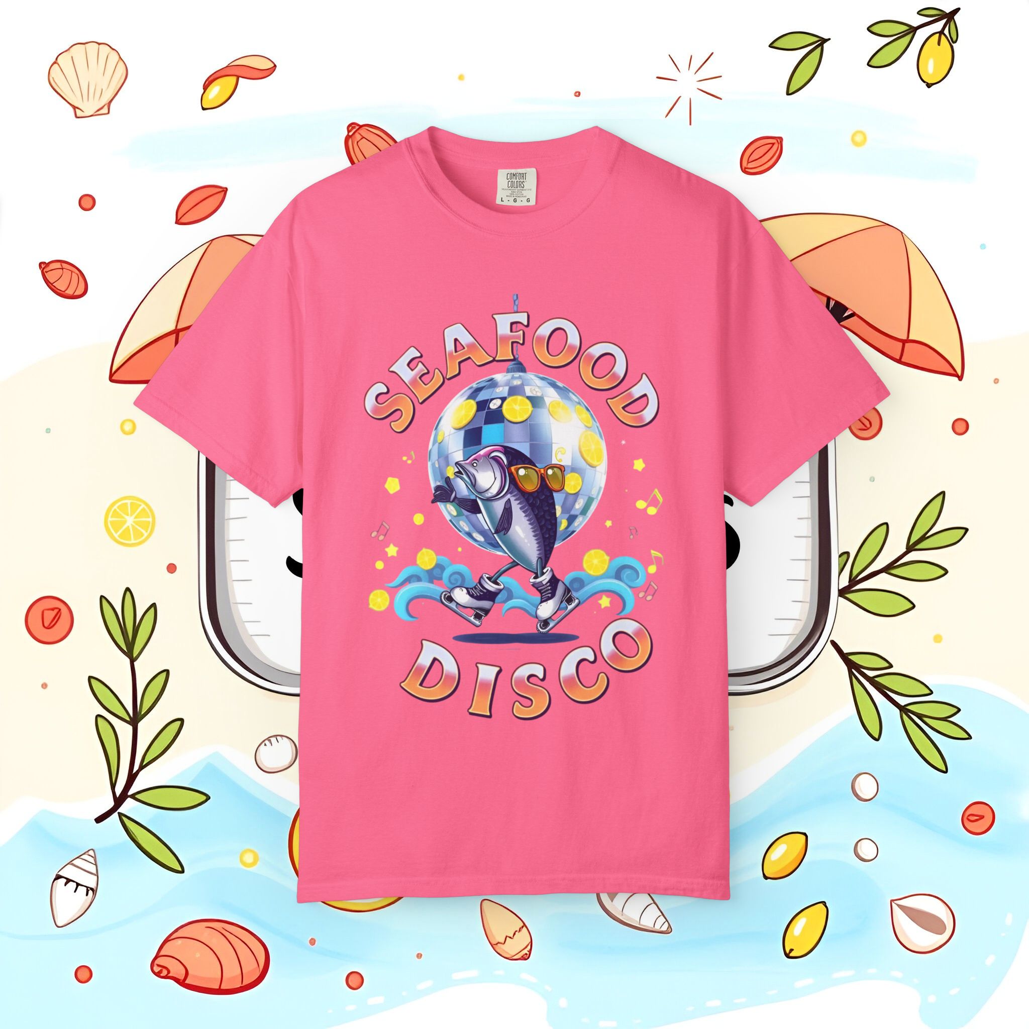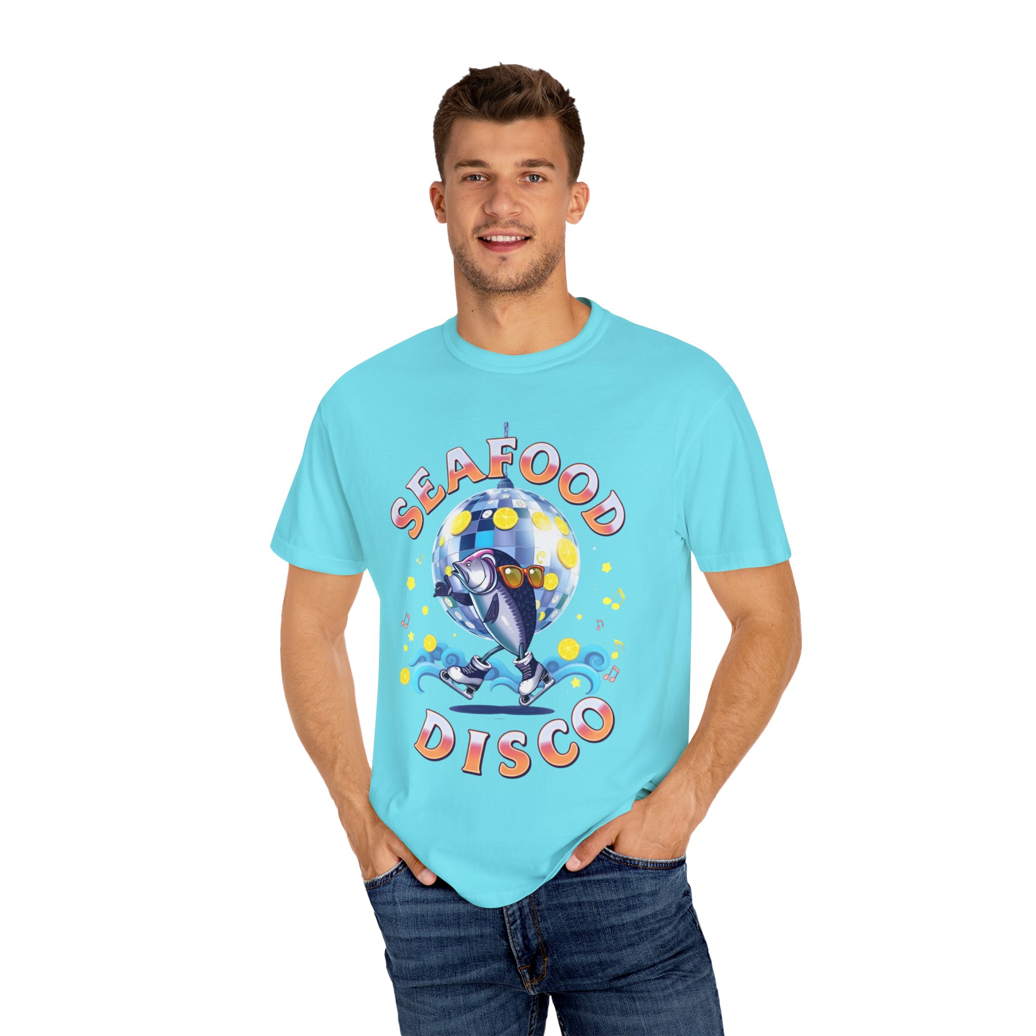 seafood disco t-shirt, seafood disco tee, seafood t-shirt, beach party tee, ocean lover t shirt, garment-dyed tee, summer graphic tee, gift for seafood lovers, coastal t shirt