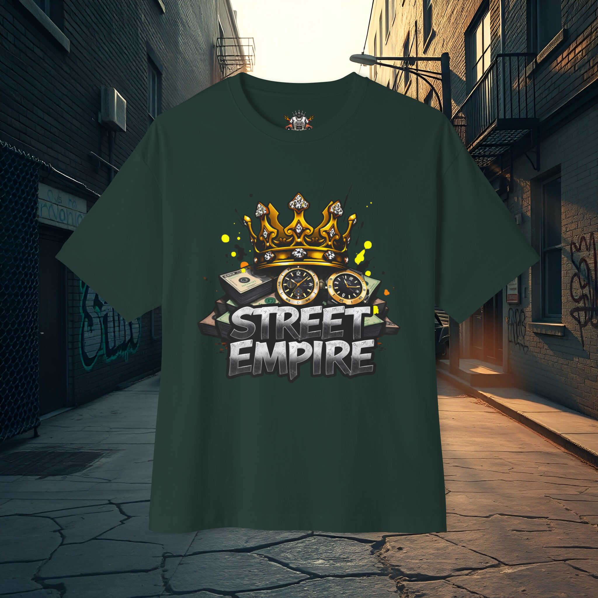 Order your Street Empire tee today — pick your color and size, check the size chart, and experience the blend of bold aesthetics and lasting comfort. Add to cart to secure your size while limited colorways remain.