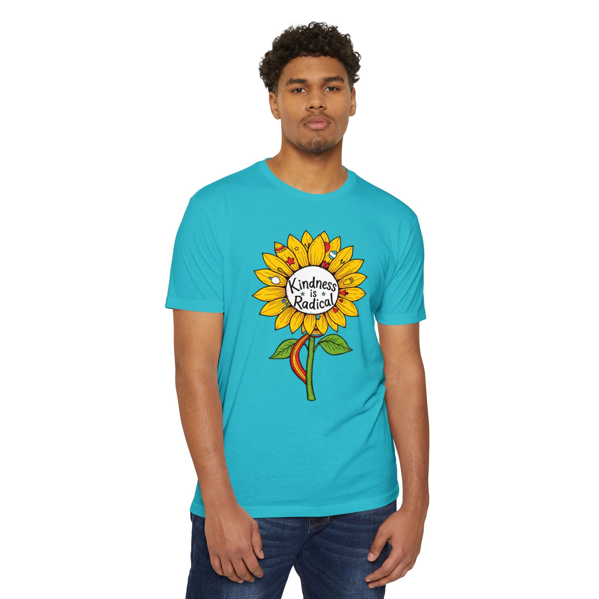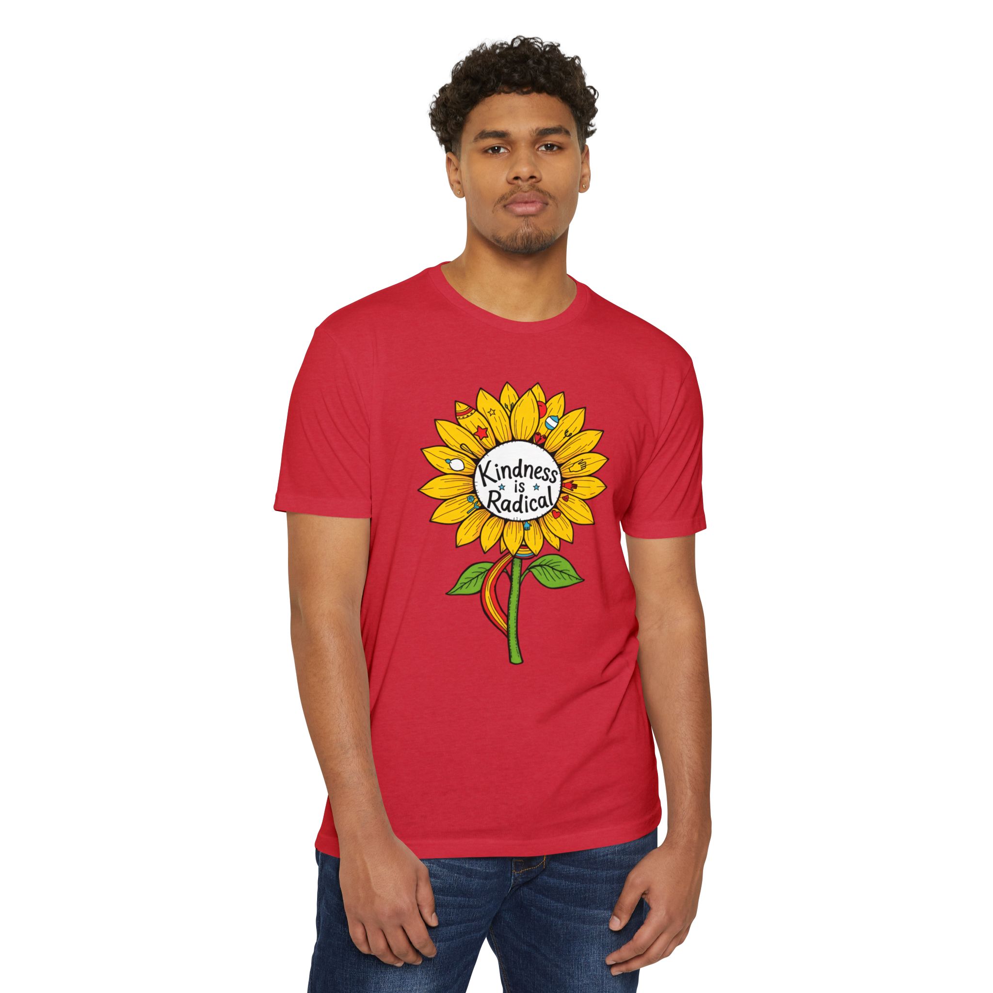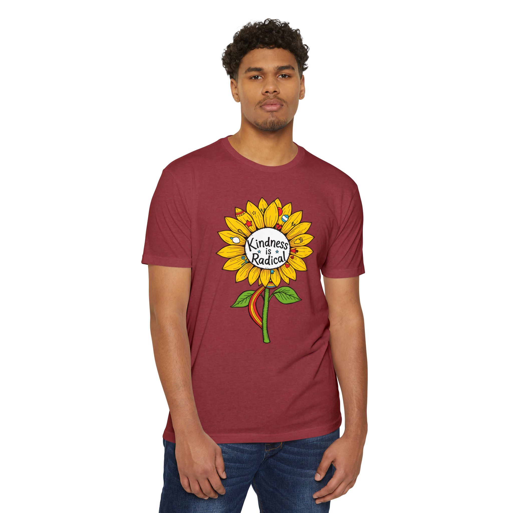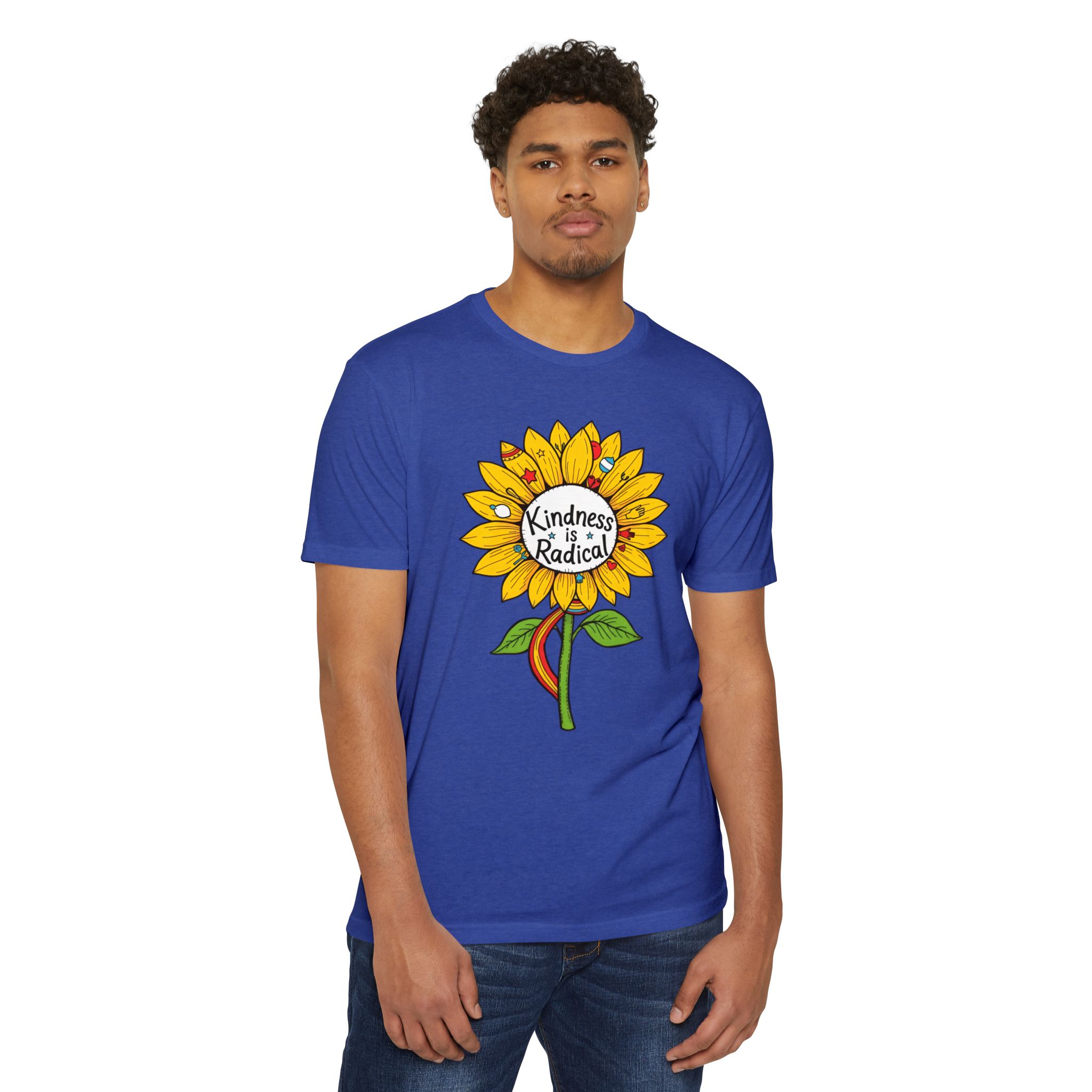 Sunflower shirt lovers—meet your new everyday favorite. This vibrant unisex CVC jersey tee features a cheerful sunflower and the uplifting message “Kindness Is Radical,” bringing feel-good style to festivals, picnics, classrooms, and relaxed weekends.