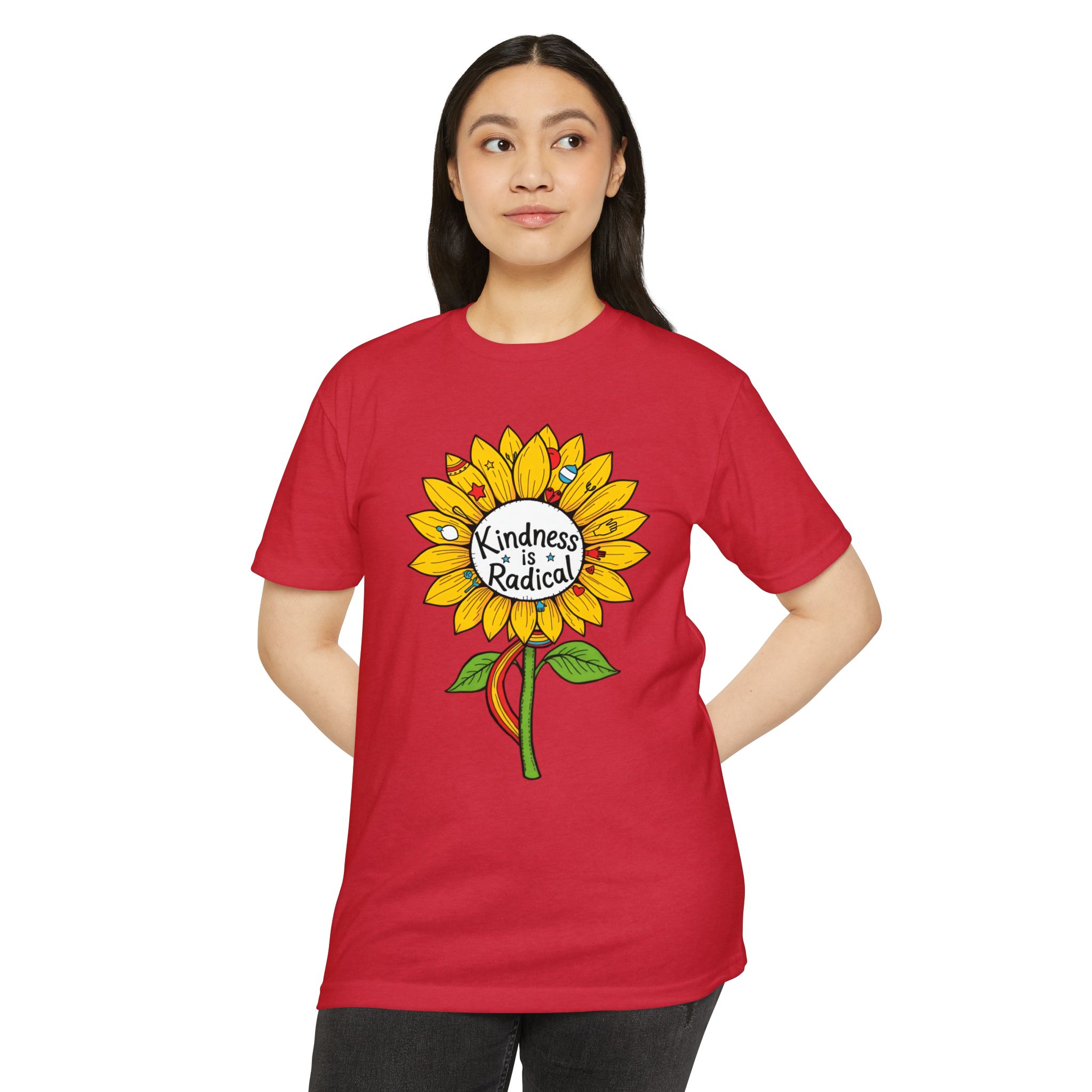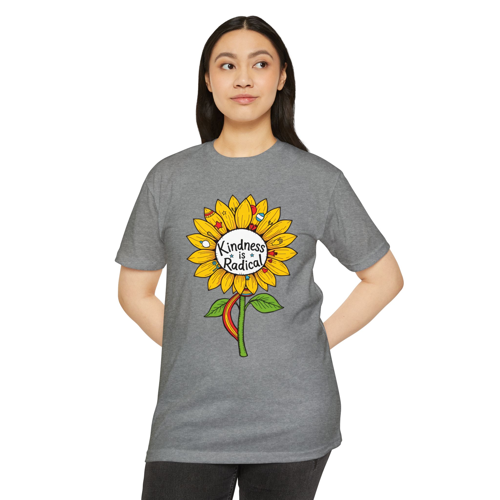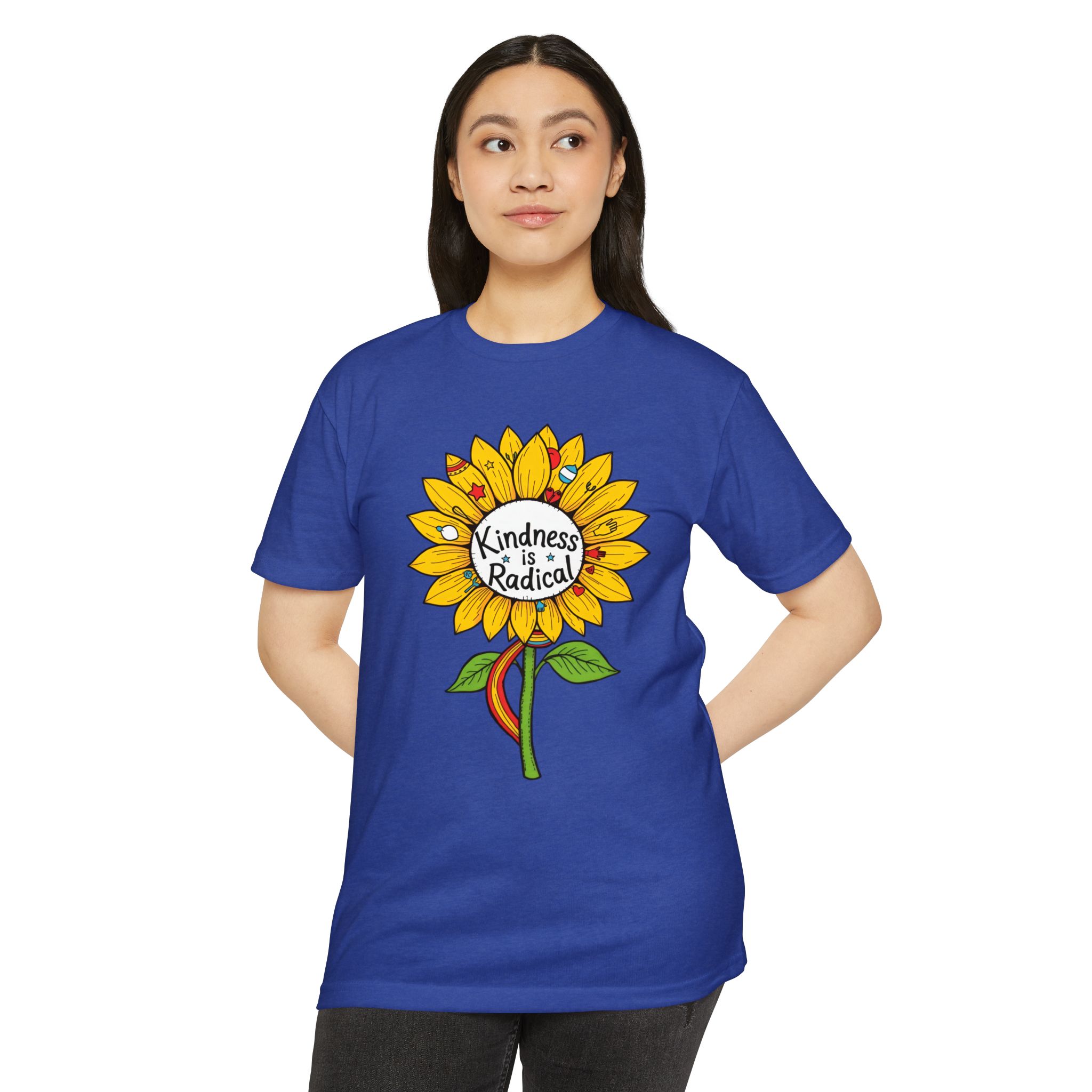 Sunflower shirt lovers—meet your new everyday favorite. This vibrant unisex CVC jersey tee features a cheerful sunflower and the uplifting message “Kindness Is Radical,” bringing feel-good style to festivals, picnics, classrooms, and relaxed weekends.