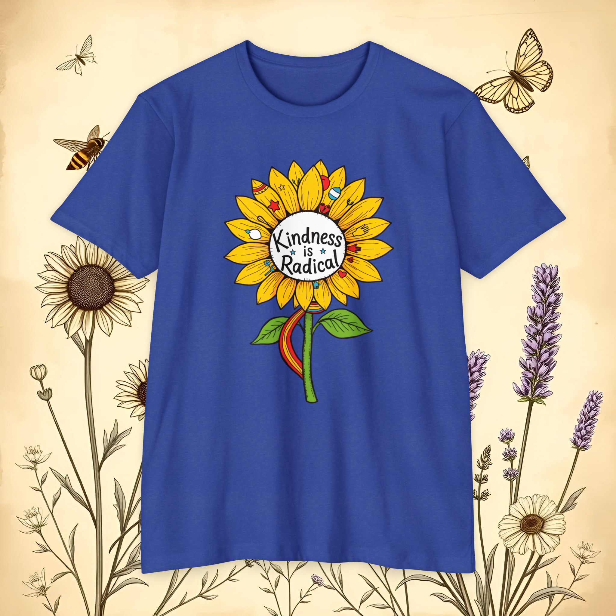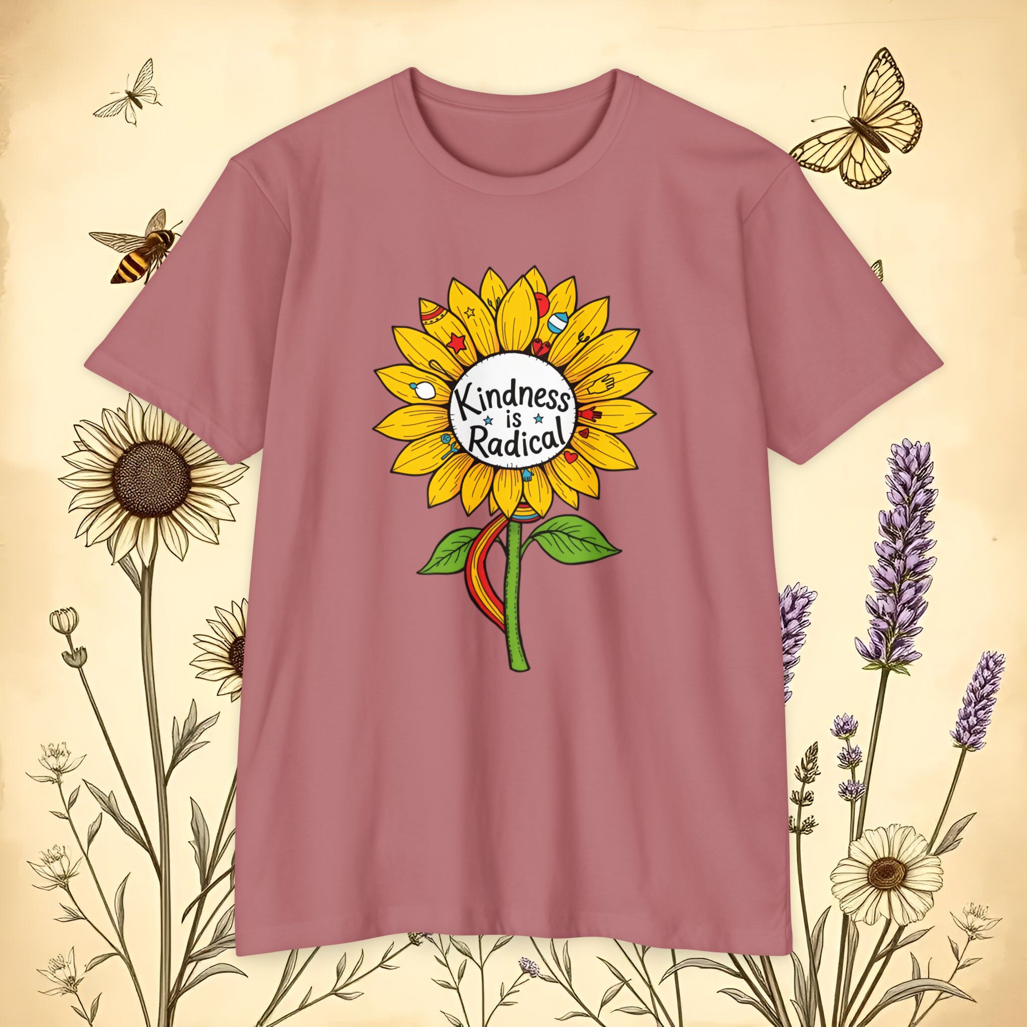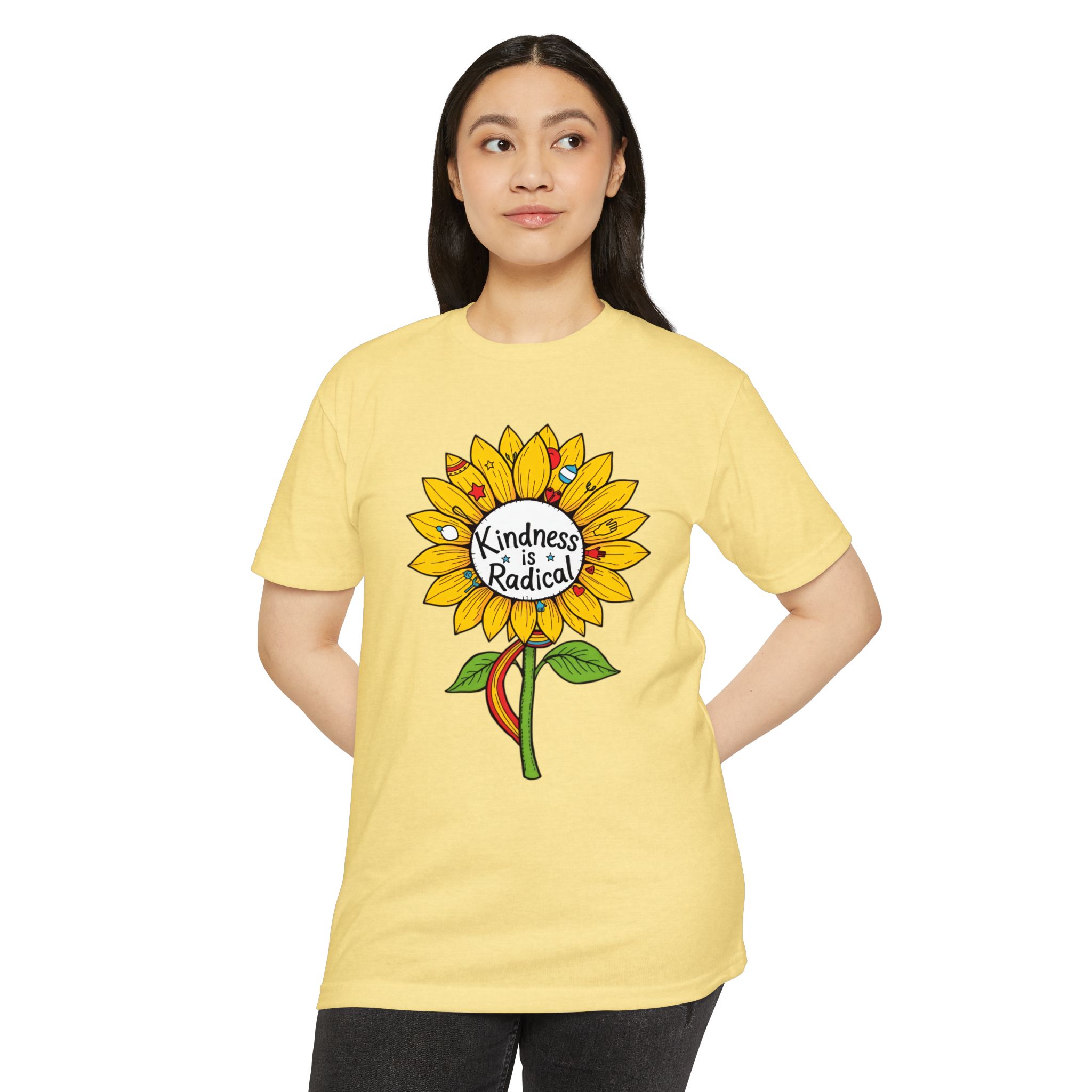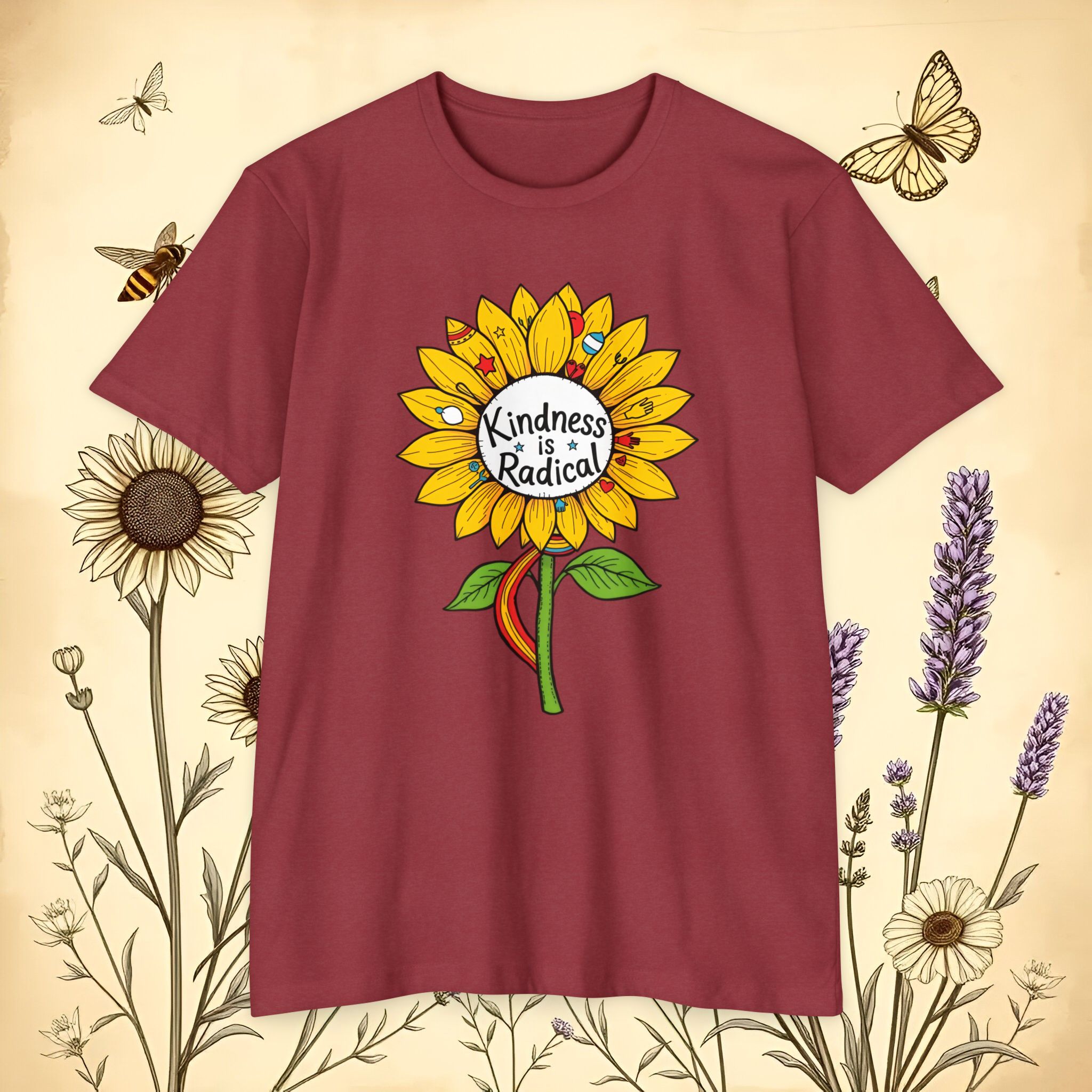 Sunflower shirt lovers—meet your new everyday favorite. This vibrant unisex CVC jersey tee features a cheerful sunflower and the uplifting message “Kindness Is Radical,” bringing feel-good style to festivals, picnics, classrooms, and relaxed weekends.