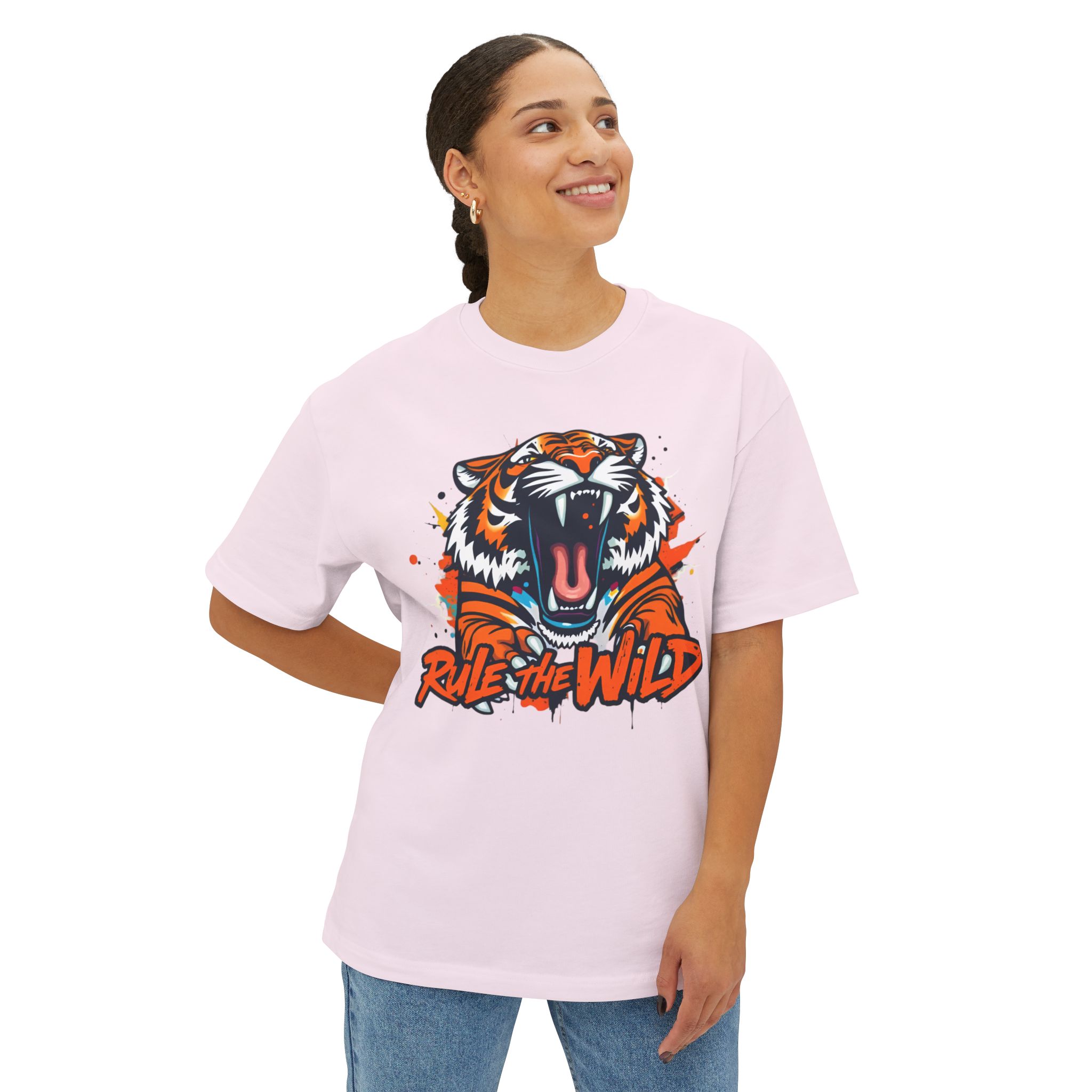 tiger graphic tee, tiger t shirt, wild tiger tee, oversized tiger tee, boxy tee, animal graphic tee, animal print t shirt, unisex oversized tee, oversized t shirt, graphic tee men, graphic tee women, 100% cotton tee, airlume