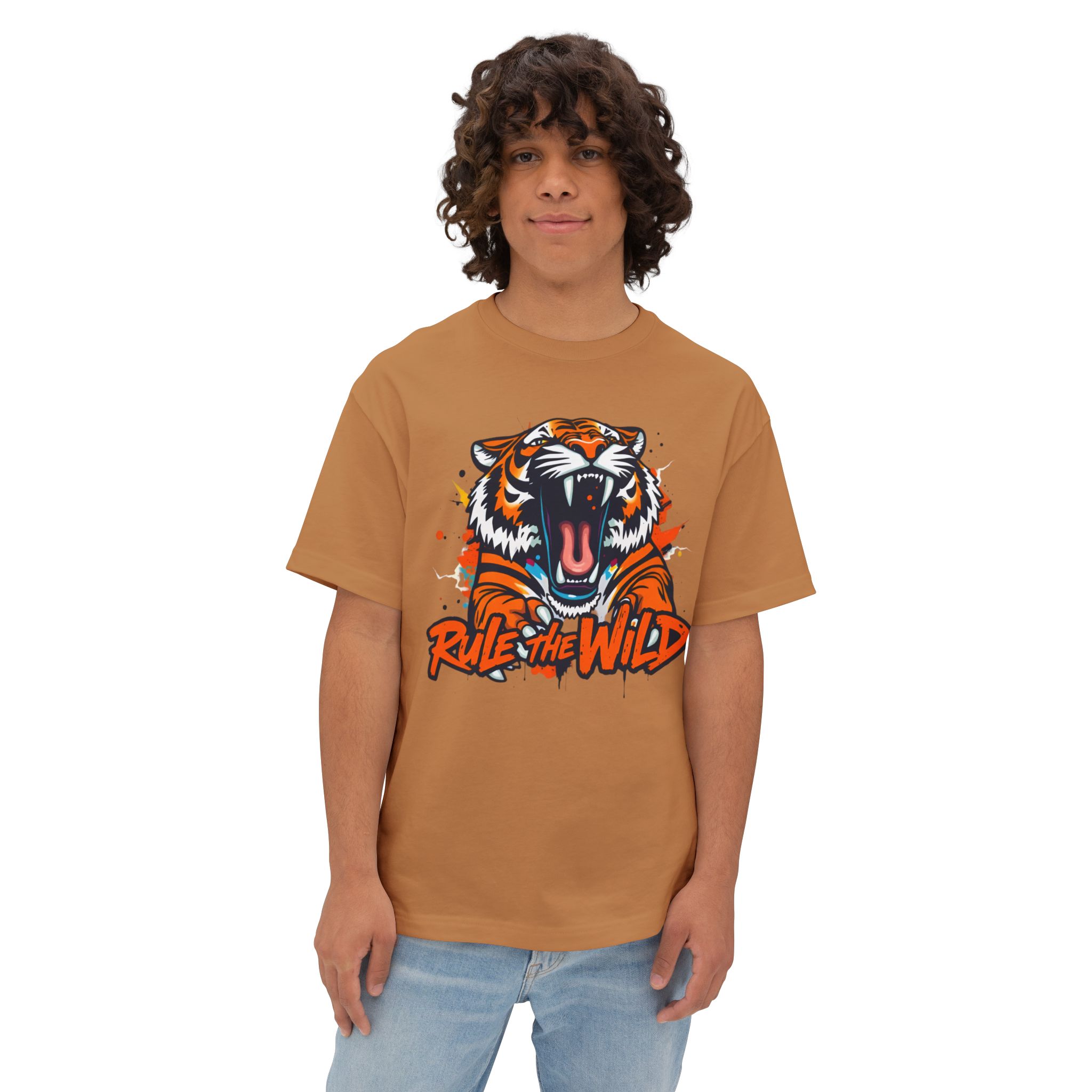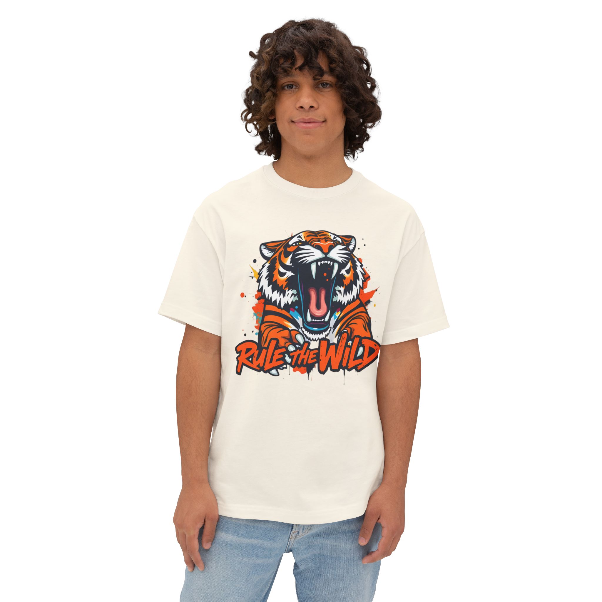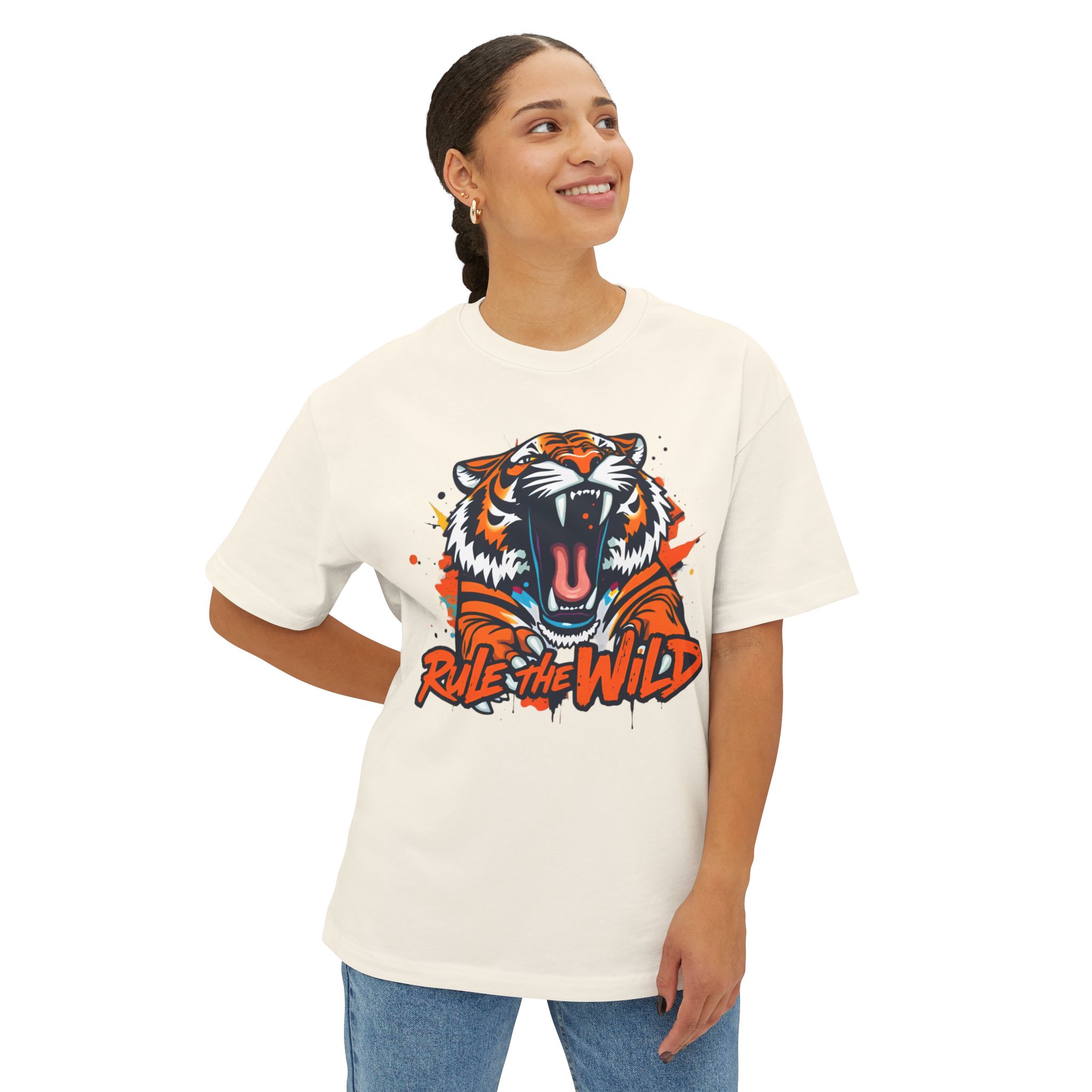tiger graphic tee, wild tiger tee, oversized tiger t-shirt, boxy tee, animal graphic tee, unisex t-shirt, festival tee, 100% cotton tee, gift for nature lovers, dropped shoulder tee